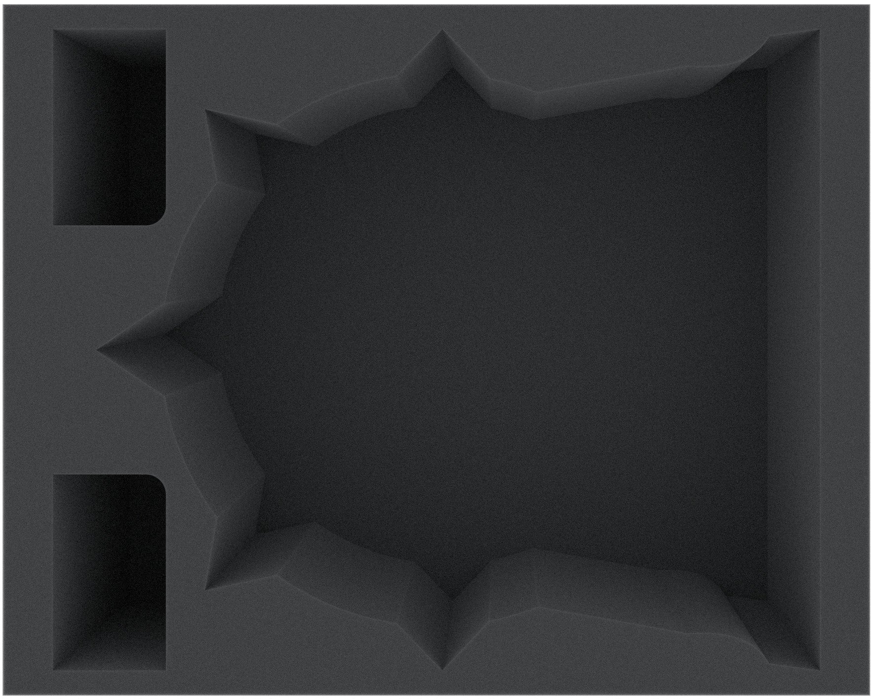 A miniature-cut compartment accomodates a model of the Noctilith Crown. The miniature-precise cut ensures that the miniature lies absolutely securely in its compartment during transport and does not slip around. This not only protects the fine parts and sharp edges from damage. The colors of the finished figure are also protected from abrasion and scratches.