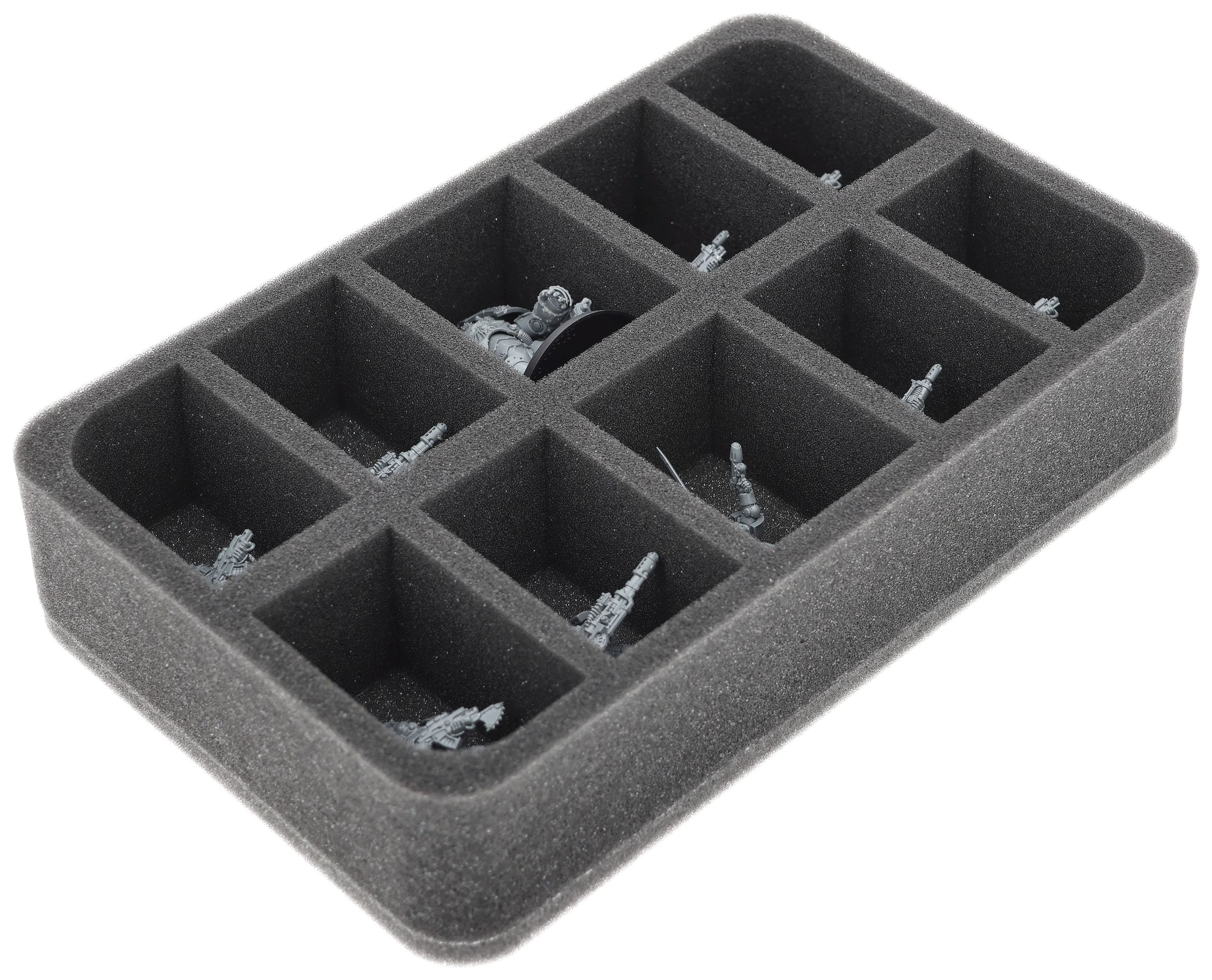 On this Feldherr foam tray you have space for up to 10 miniatures of your army. The insert is especially suitable for storing the Saturnine Terminator Squad and similar sized models.