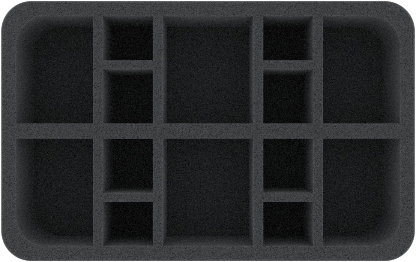 Up to 14 Genestealer warriors find a safe place in this Half-Size foam insert. The different sized compartments are suitable for standard warrior models on 25 mm base, as well as for larger Genestealer Cults miniatures.