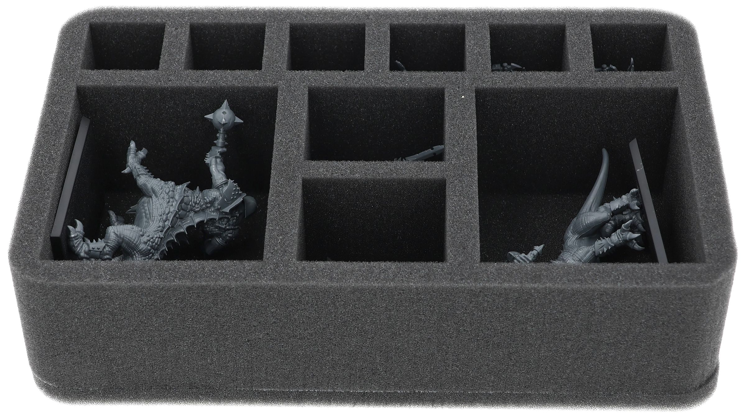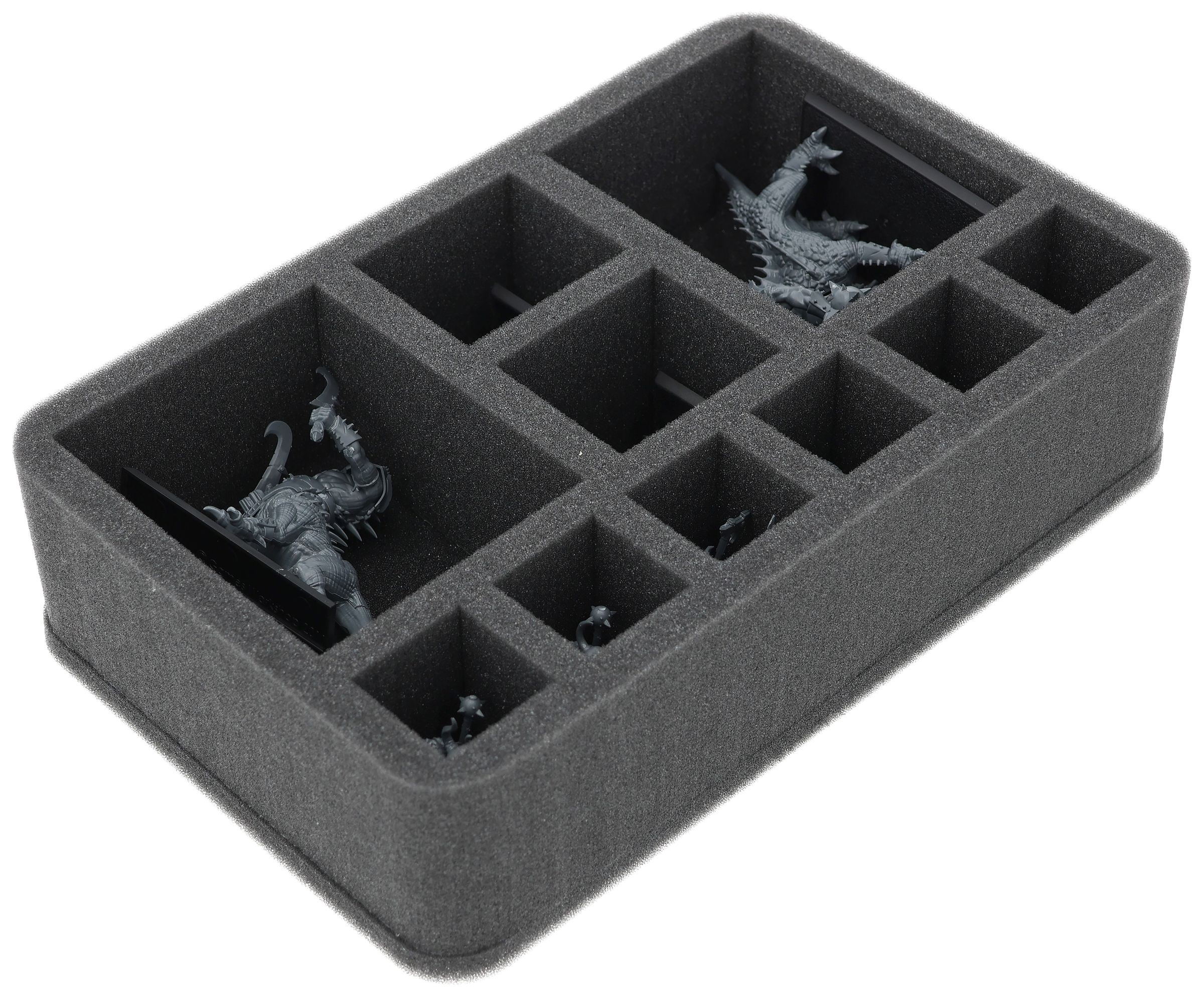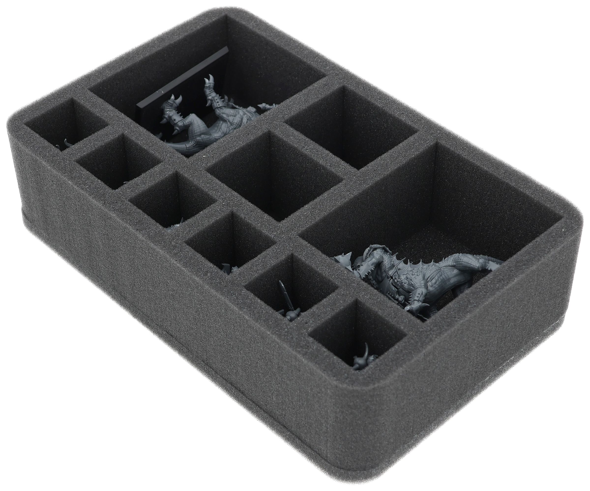 On this Feldherr foam tray you have space for up to 10 miniatures of your army. The insert is especially suitable for storing the Chaos Warriors, Chaos Marauders, Dragon Ogres and similar sized models.