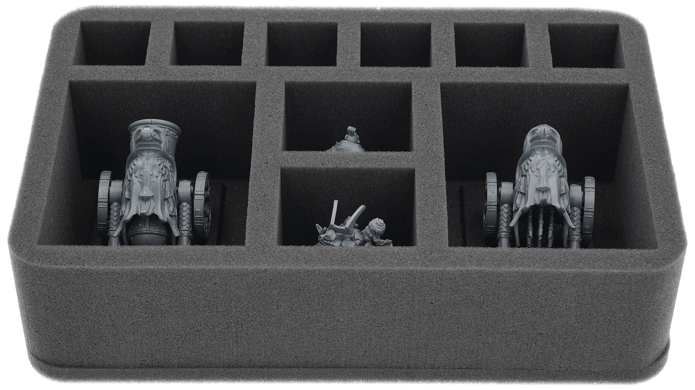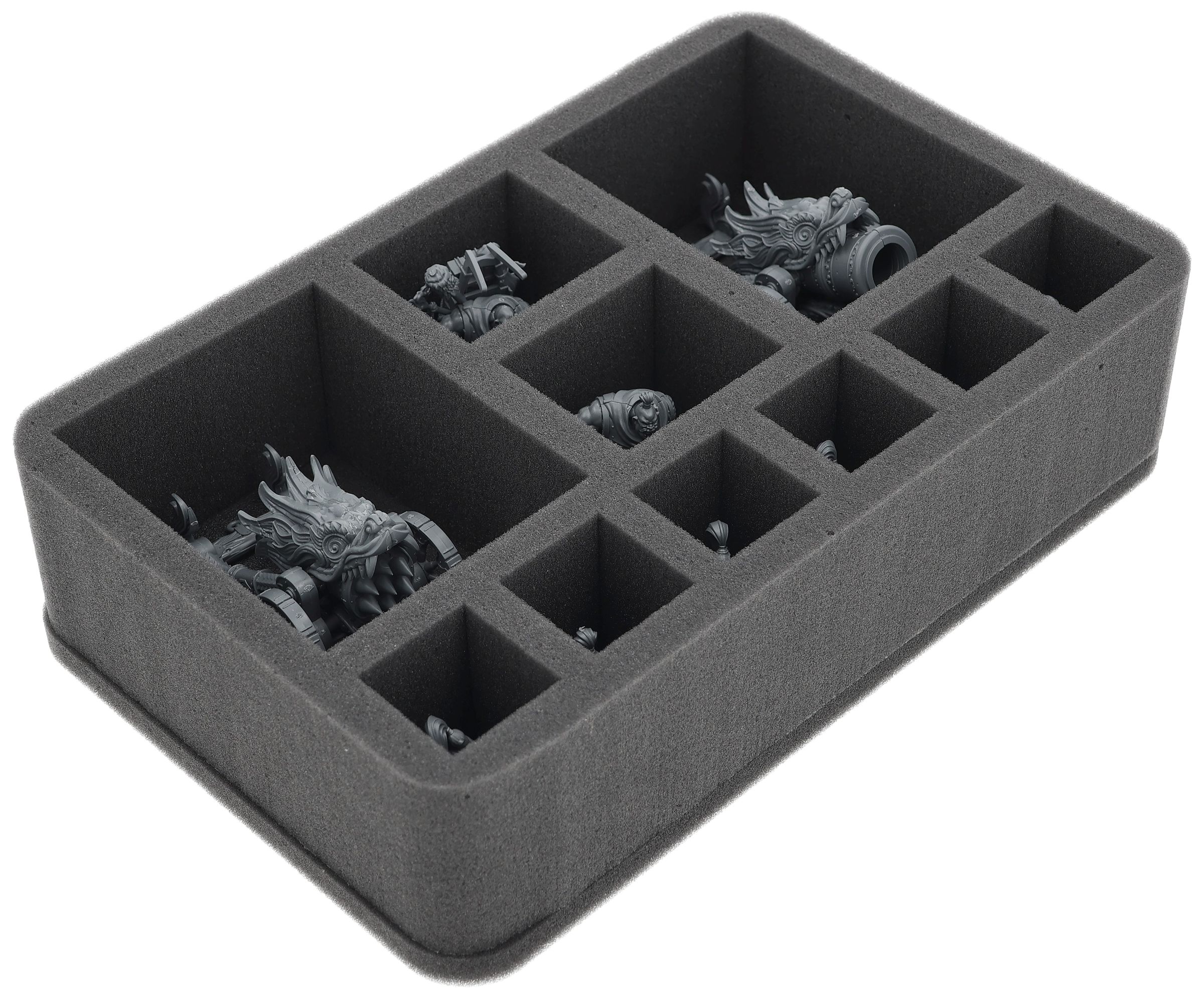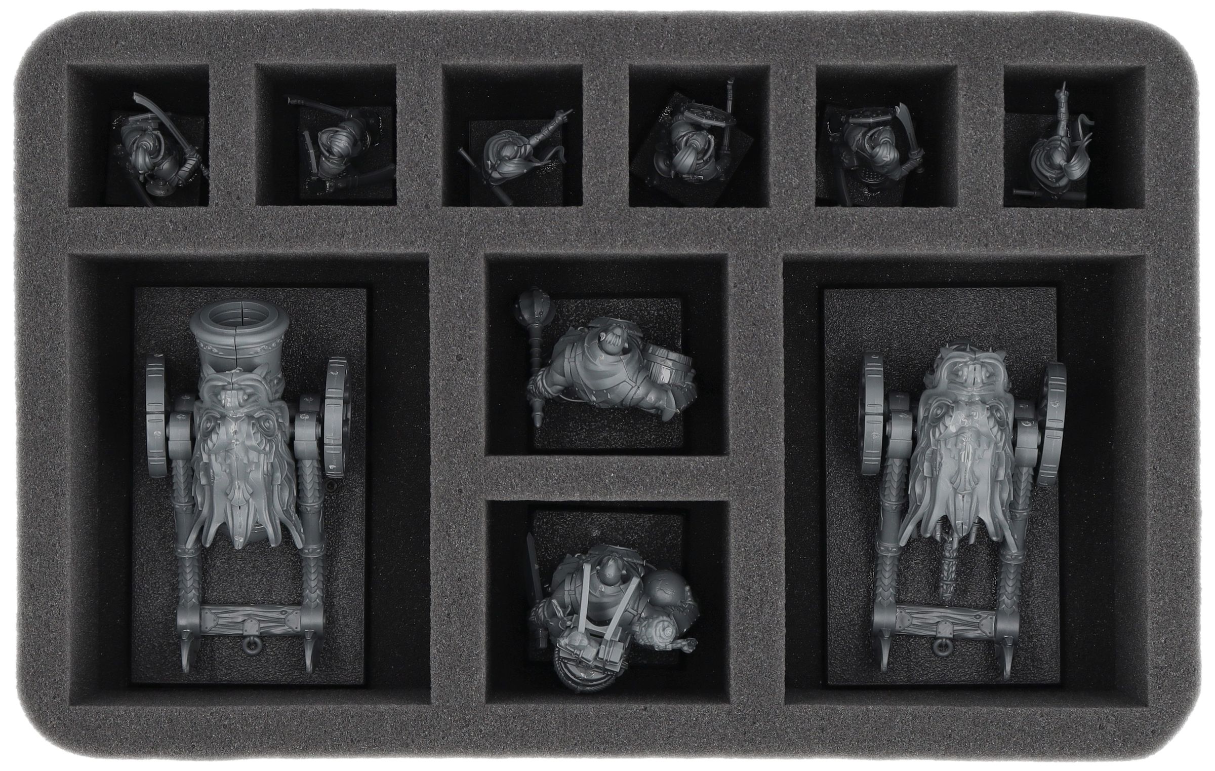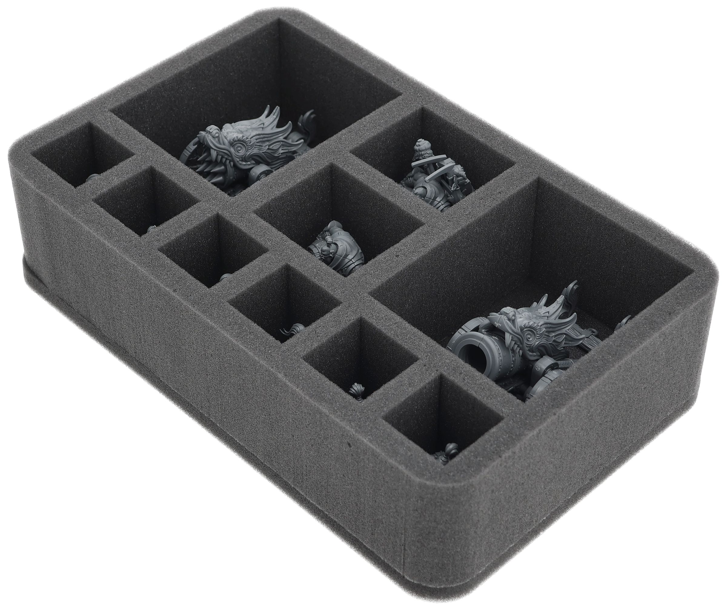 On this Feldherr foam tray you have space for up to 10 miniatures of your army. The insert is especially suitable for storing the Jade Warriors, Cathayan Grand Cannon, Jade Lancers and similar sized models.