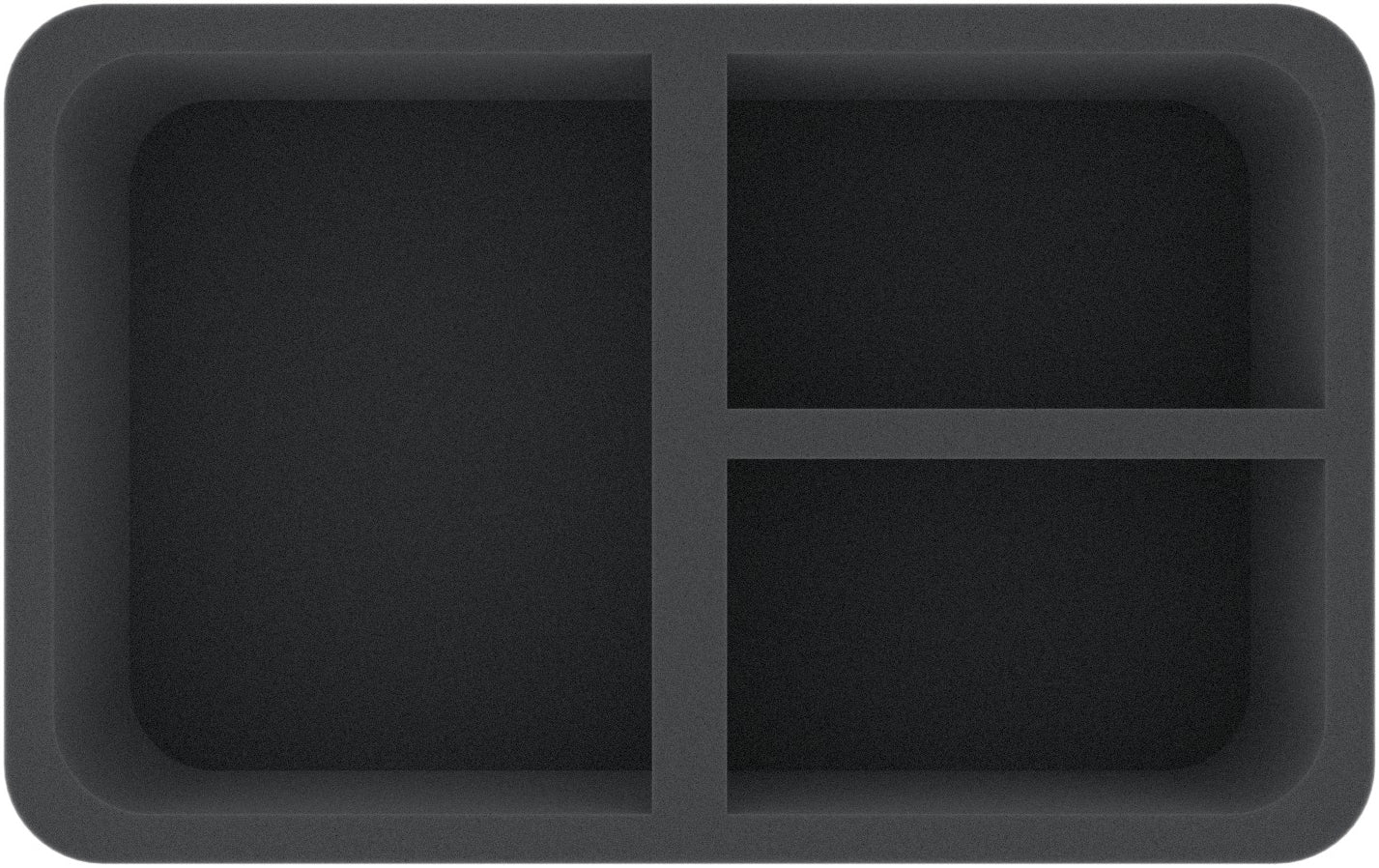The Half-Size foam tray has the dimensions: 275 mm x 172 mm x 70 mm total height (60 mm usable height + 10 mm foam base).