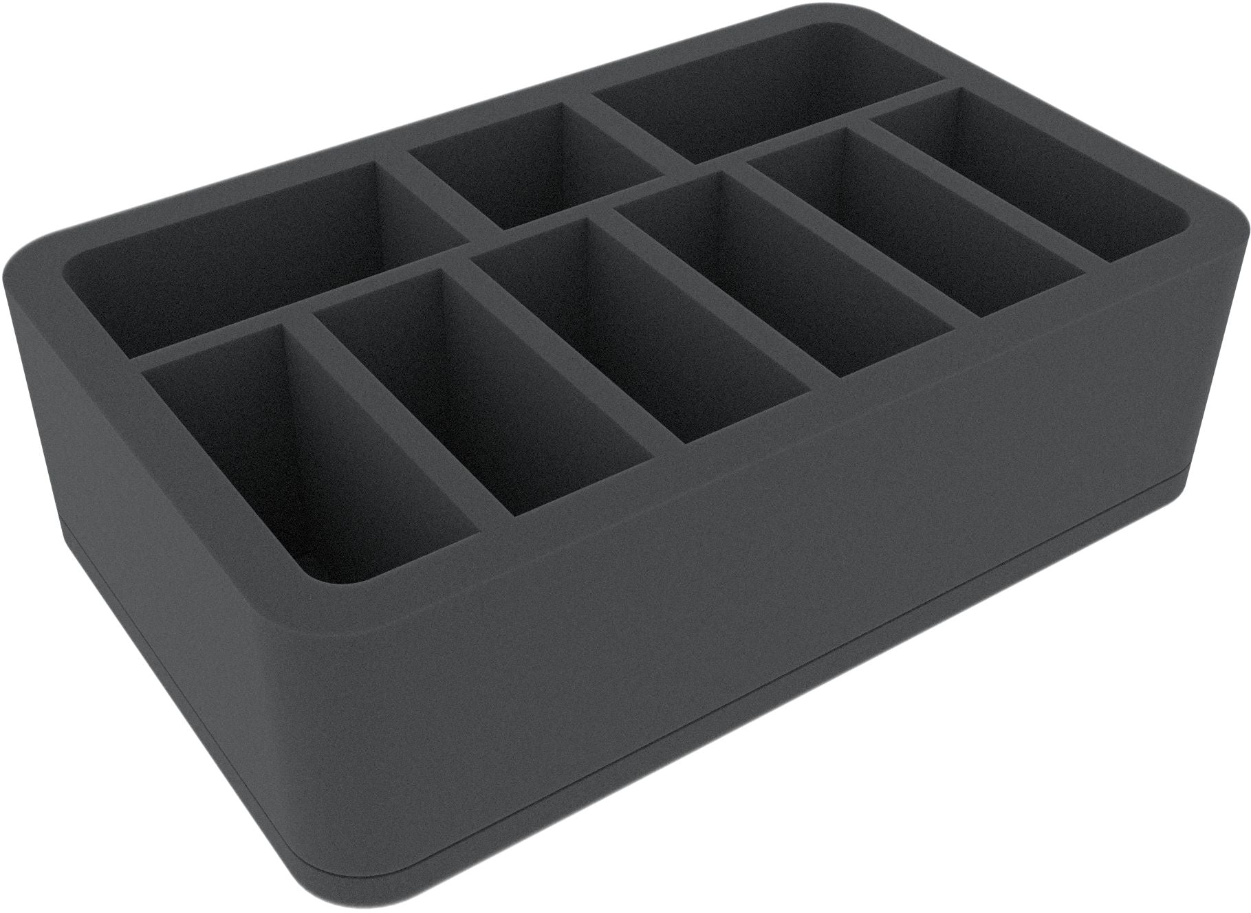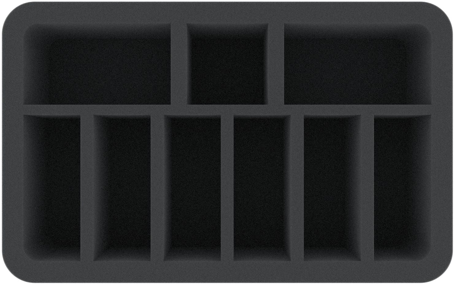 This 80 mm high foam tray is divided into 9 compartments. It is particularly suitable for the safe storage of tabletop and board game miniatures, as well as other fragile models and small parts.