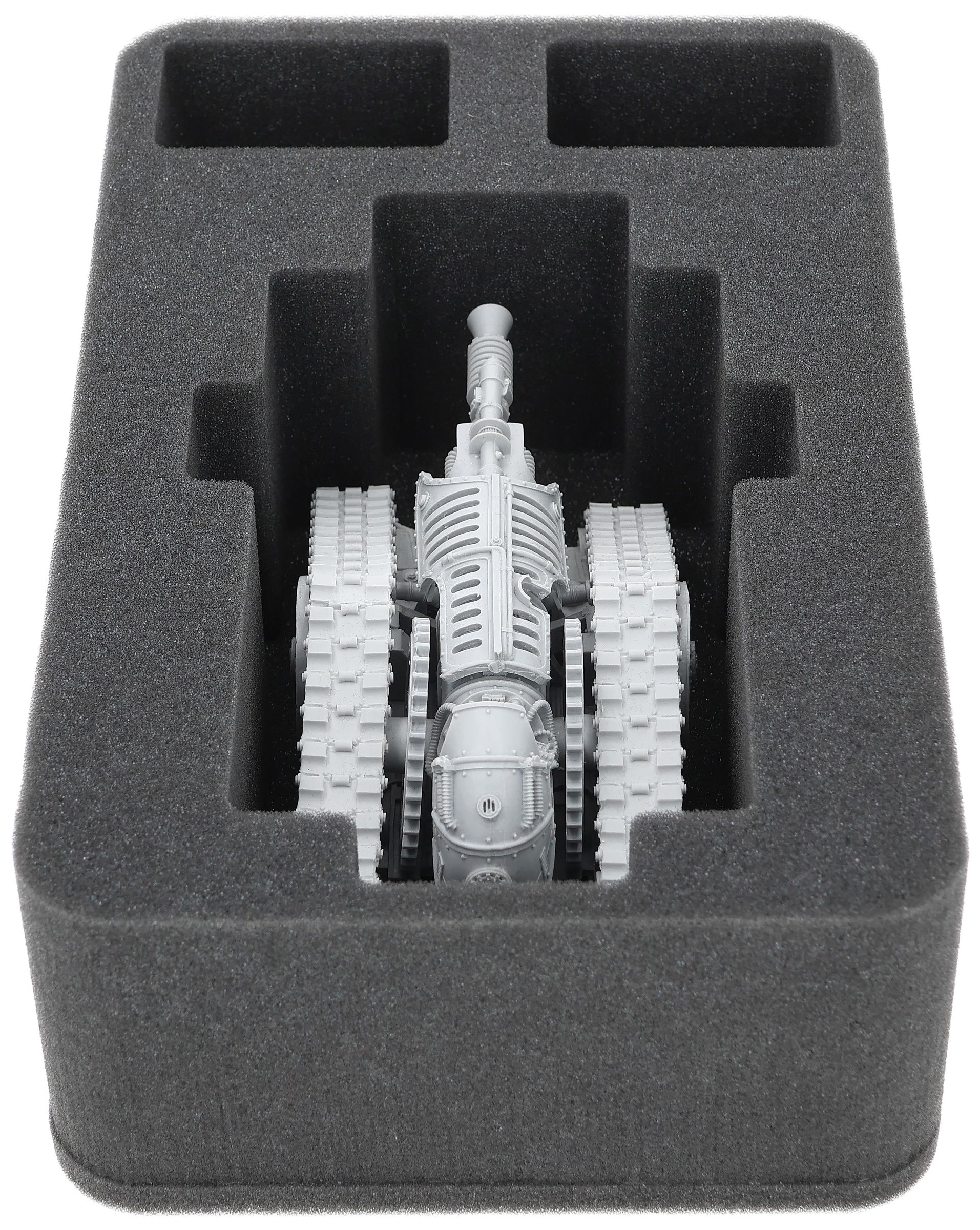 On this Feldherr foam tray you have space for up to 3 miniatures of your army. The insert is especially suitable for storing the Mechanicum Krios Battle Tank and similar sized models. The two adjoining compartments give you space for two smaller models.
