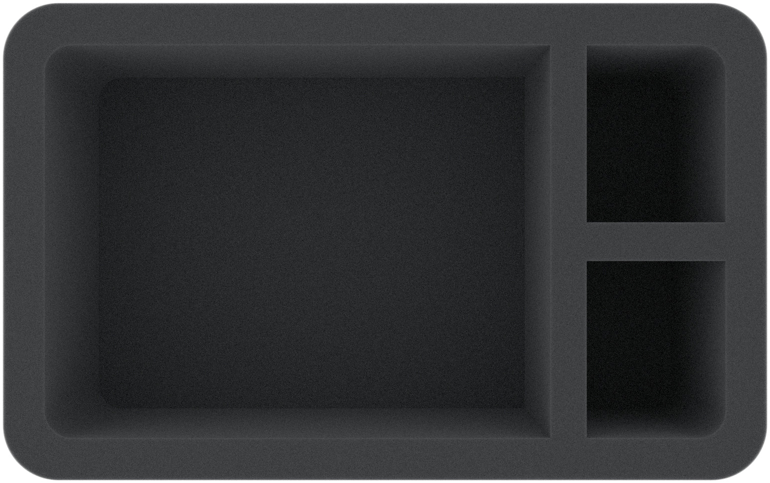 The Half-Size foam tray has the dimensions of 275 mm x 172 mm x 100 mm total heigh (110 mm usable height + 10 mm foam base)