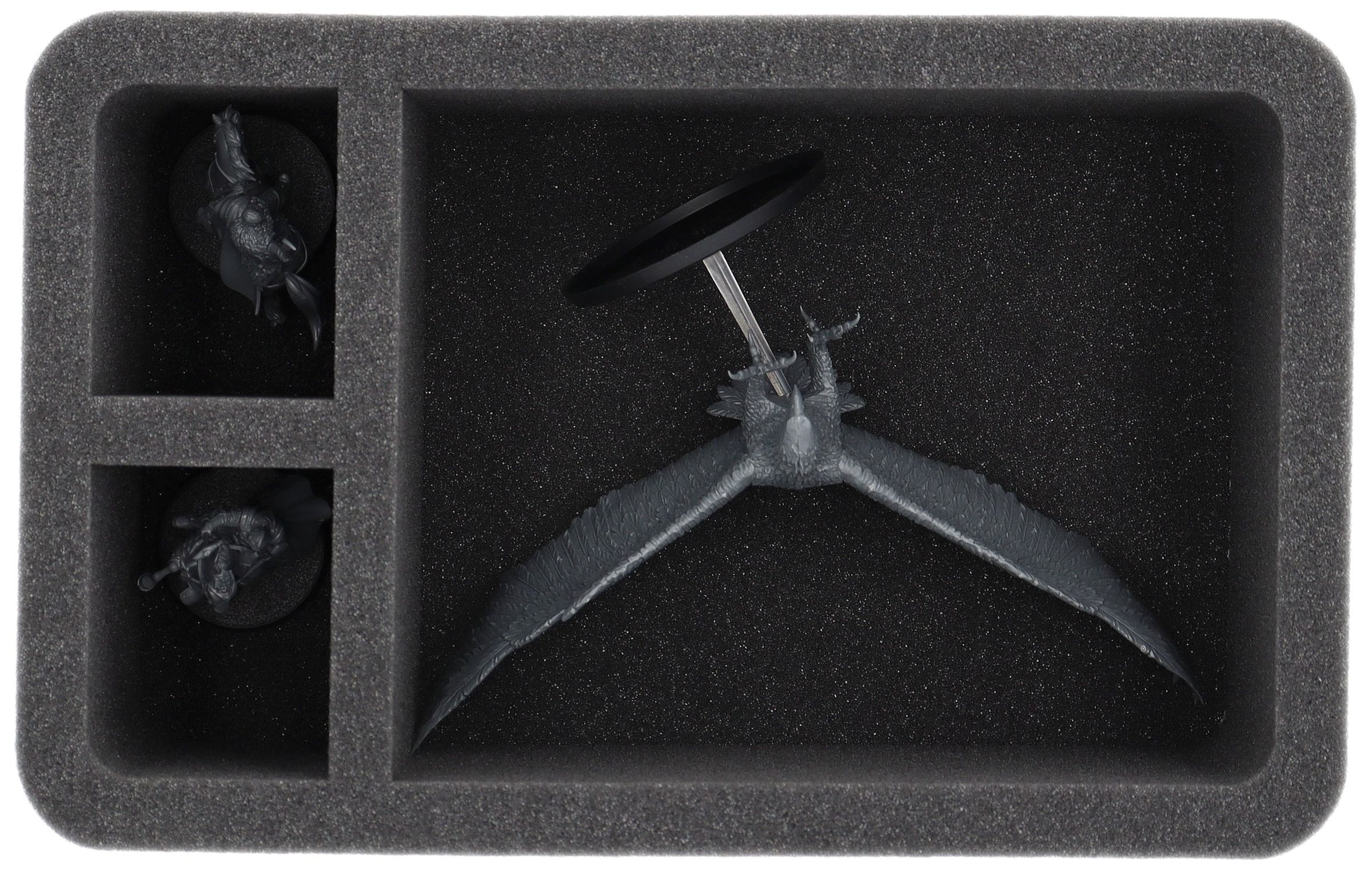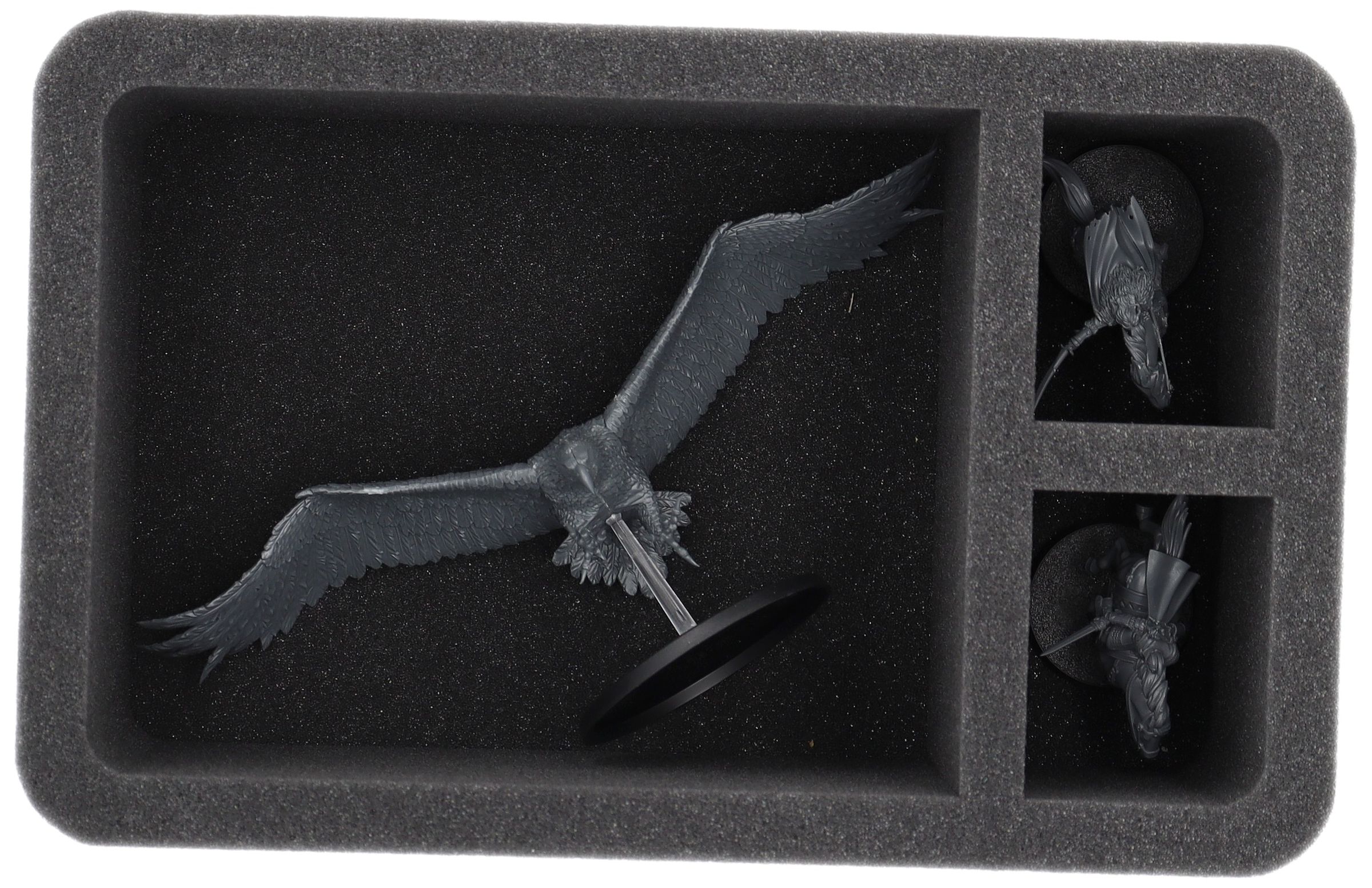 On this Feldherr foam tray you have space for up to 3 miniatures of your army. The insert is especially suitable for storing the Great Eagles of the misty mountains and similar sized models.