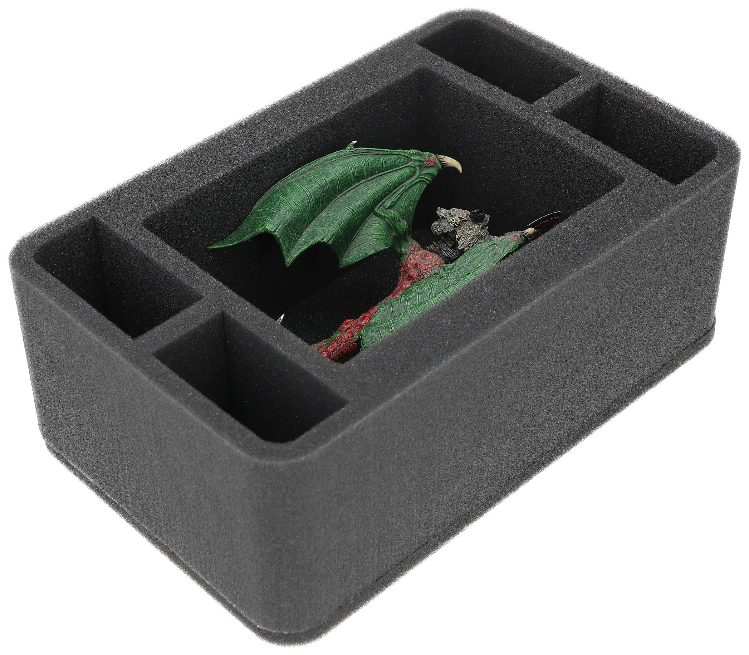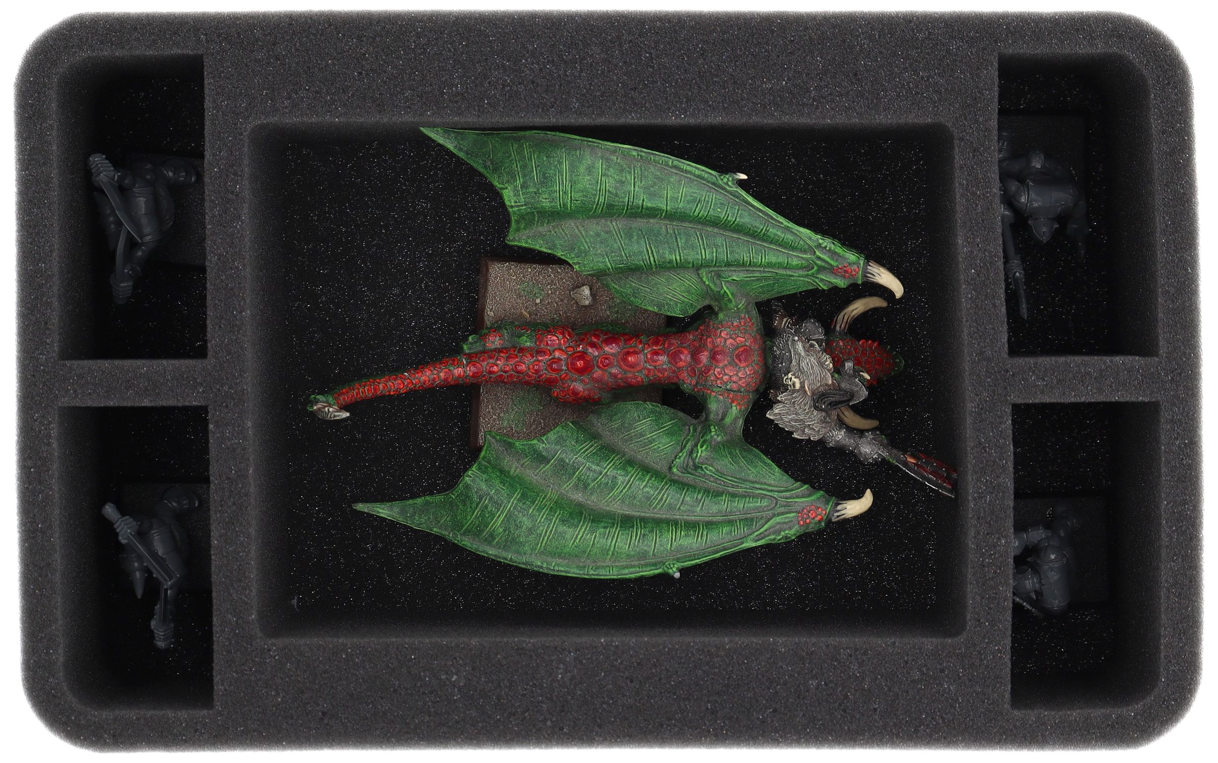 On this Feldherr foam tray you have space for up to 5 miniatures of your army. The insert is especially suitable for storing the Orc Warboss on Wyvern, standard infantry units and similar sized models.