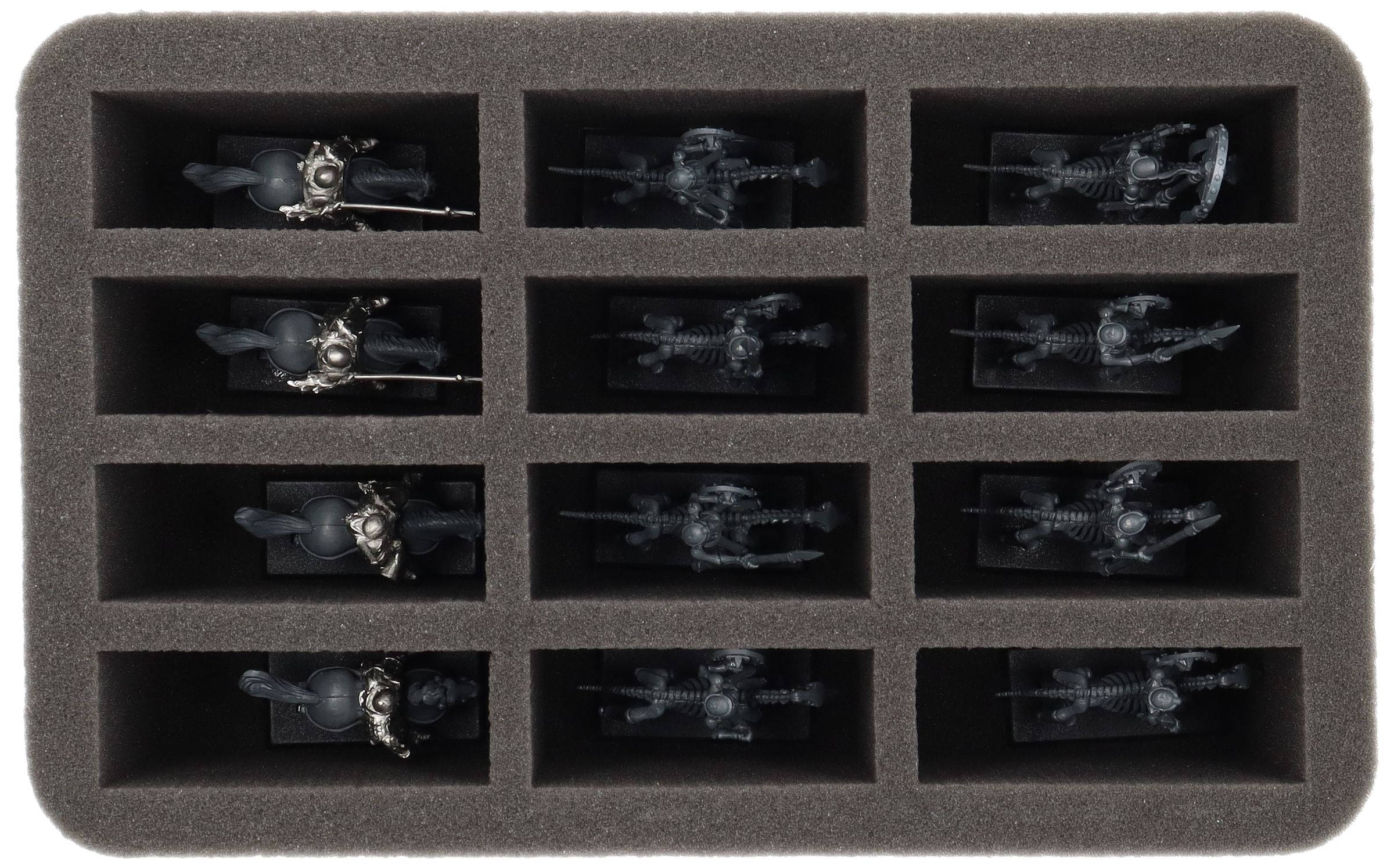 The Feldherr Half-Size foam tray provides space for up to 12 miniatures of your army. Ideal for cavalry units like Skeleton Horsemen (incl. banner bearer) and Horse Archers or models of similar dimensions.