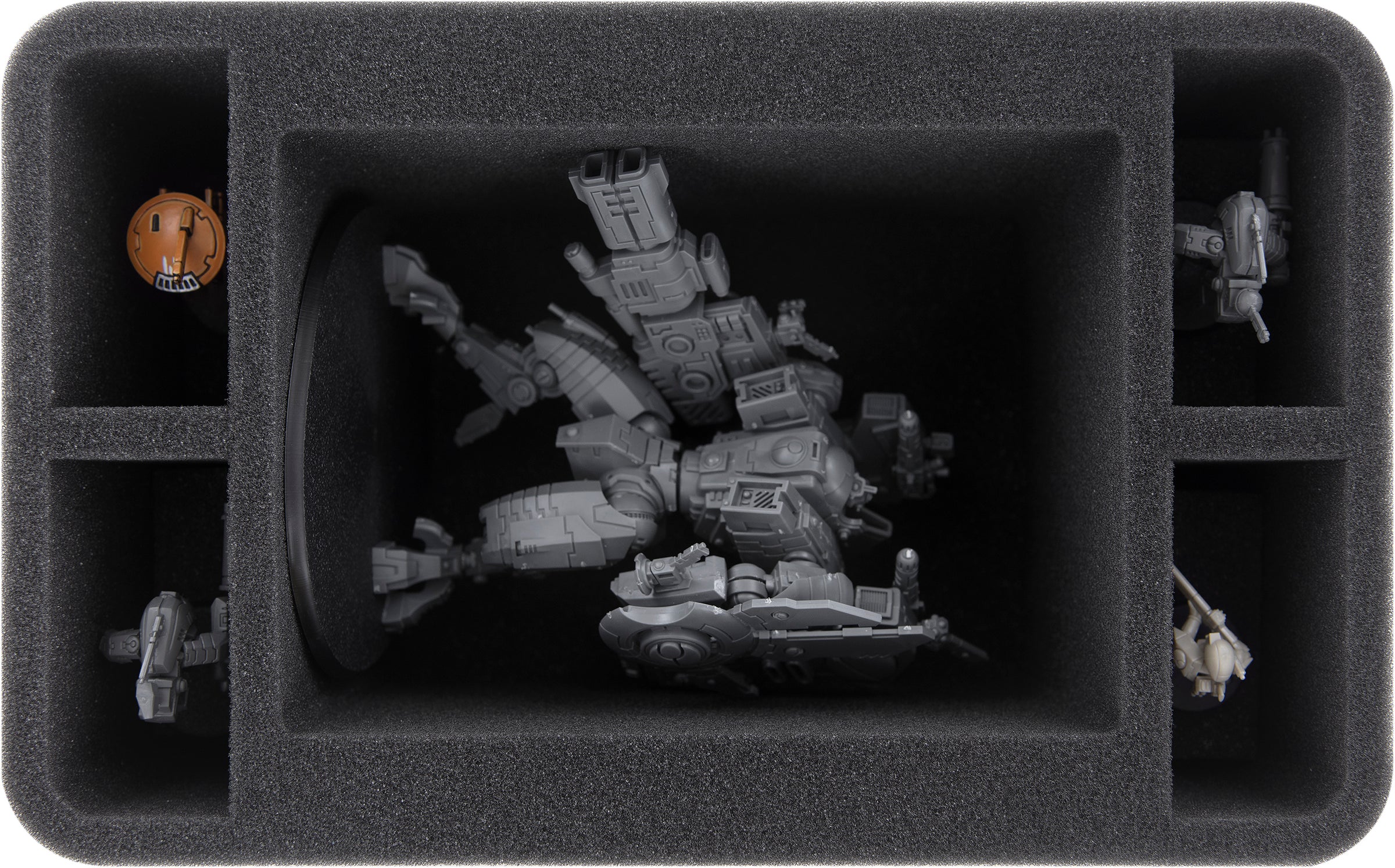 Since the materials for its nano-crystalline alloy armor are difficult to obtain, the Riptide Battlesuit remains a rare sight in the lines of the T'au Empire. To make sure that nothing happens to this rarity on the way to the gaming table, here you get the matching Feldherr Half-Size foam tray for your miniature.