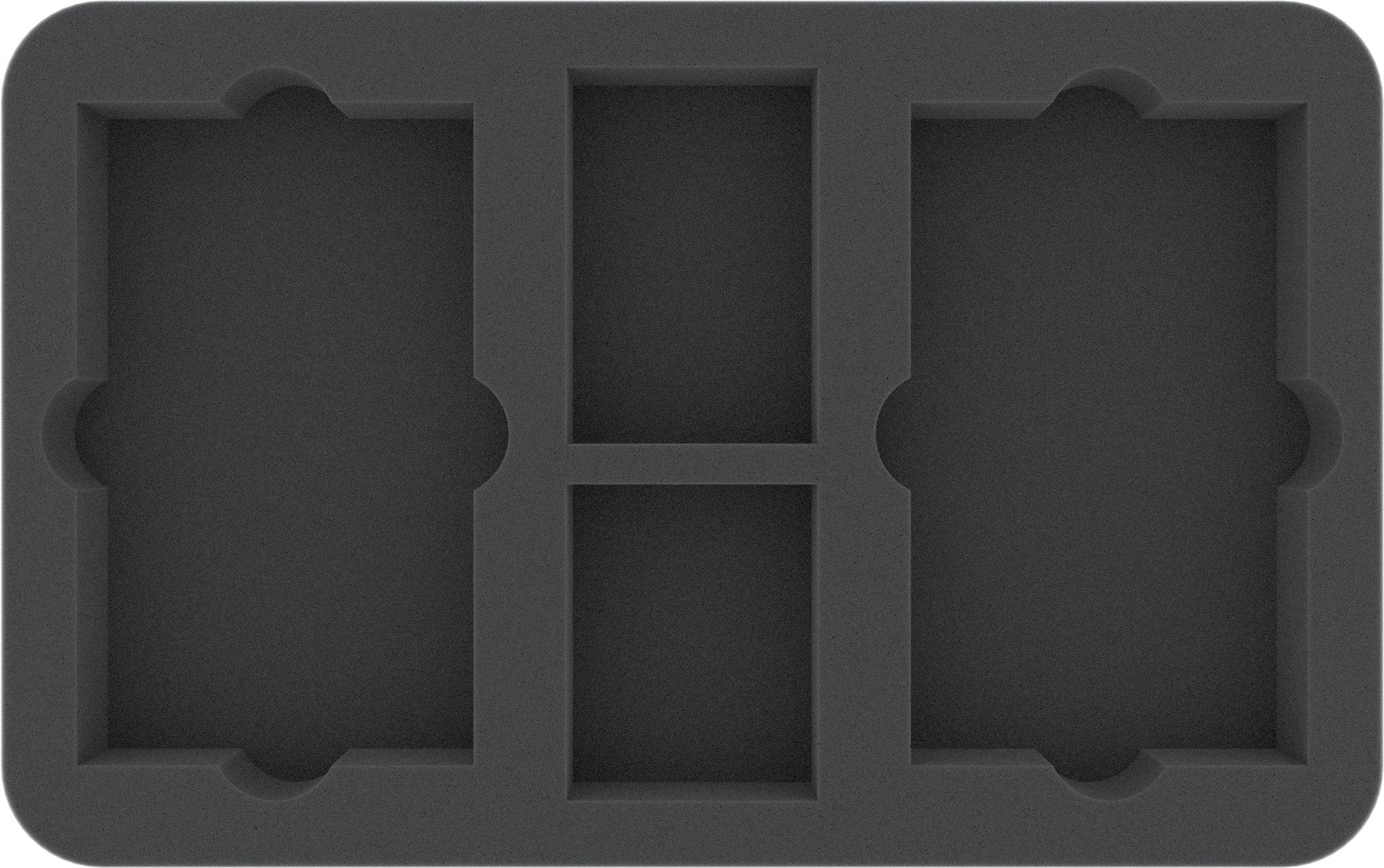 Questo inserto in schiuma Half-Size ha 4 scomparti di diverse dimensioni. È particolarmente adatto per la conservazione ordinata di materiale di gioco come carte, pennarelli o gettoni.