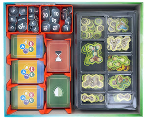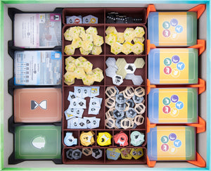 - Scomparti strutturati per carte, segnalini, pedine e plance dei giocatori di Ark Nova