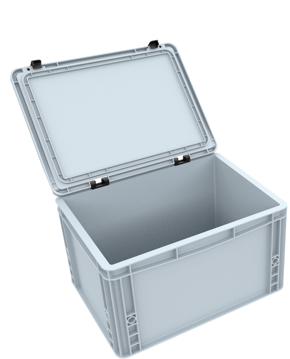 • Stackable 40 x 30 cm Eurobox made of durable plastic with a sturdy hinged lid - ideal for transport and storage