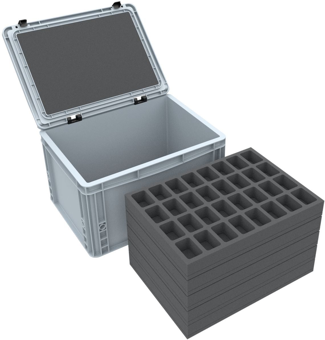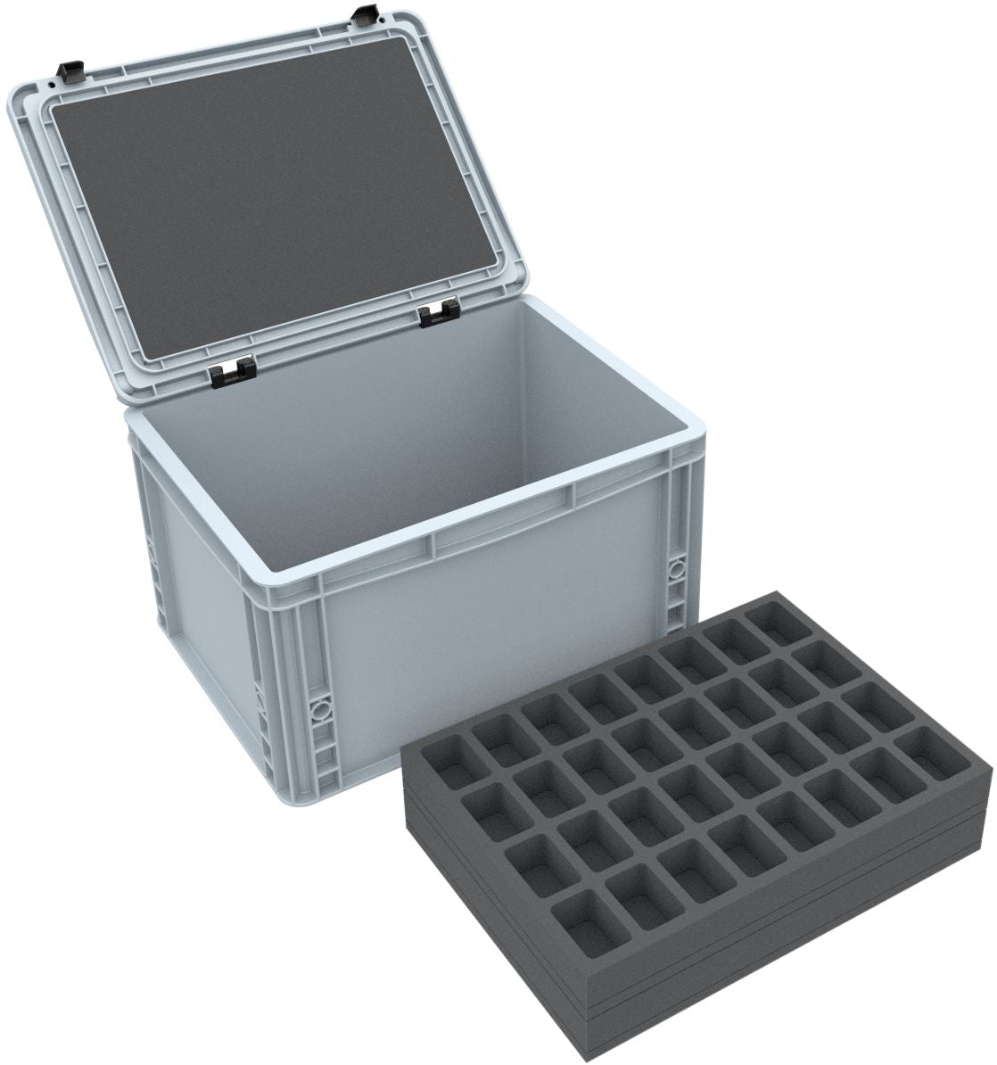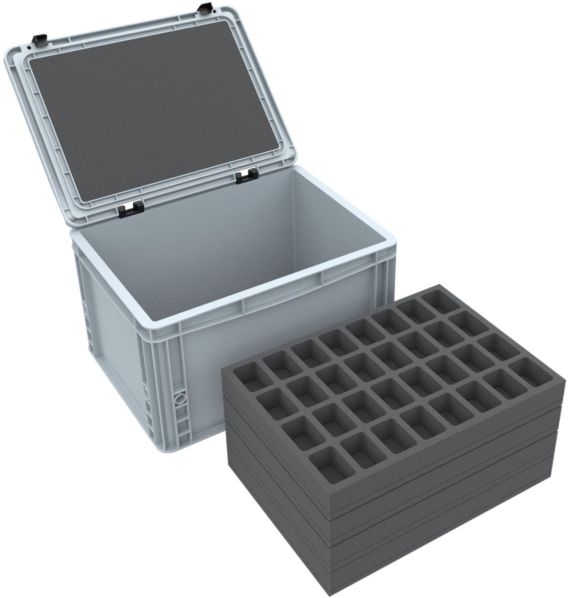 Whether for transport to your next game or safe storage at home - this Feldherr Eurobox set keeps your tabletop miniatures well organized and protected. The five precisely fitting foam inserts keep your figures and accessories safe. Perfect for wargaming and board game miniatures from systems like Warhammer 40,000, Age of Sigmar, The Old World, Kill Team, BattleTech, Marvel Crisis Protocol, and Warcry.