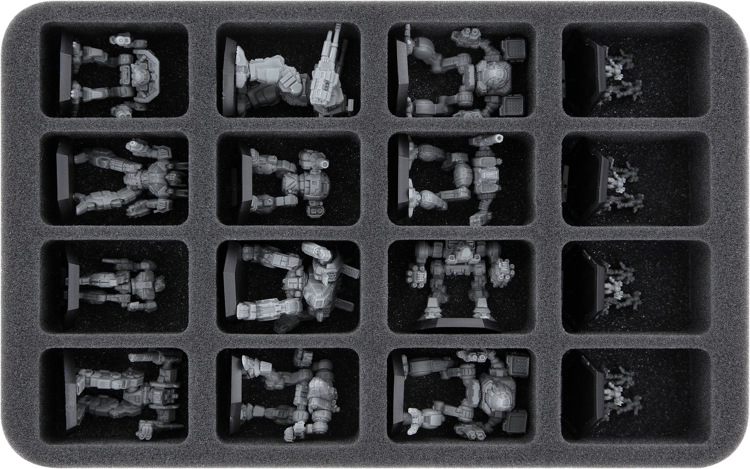 - 1 Half-Size foam trays with 16 compartments for smaller Mechs (HS040A021)