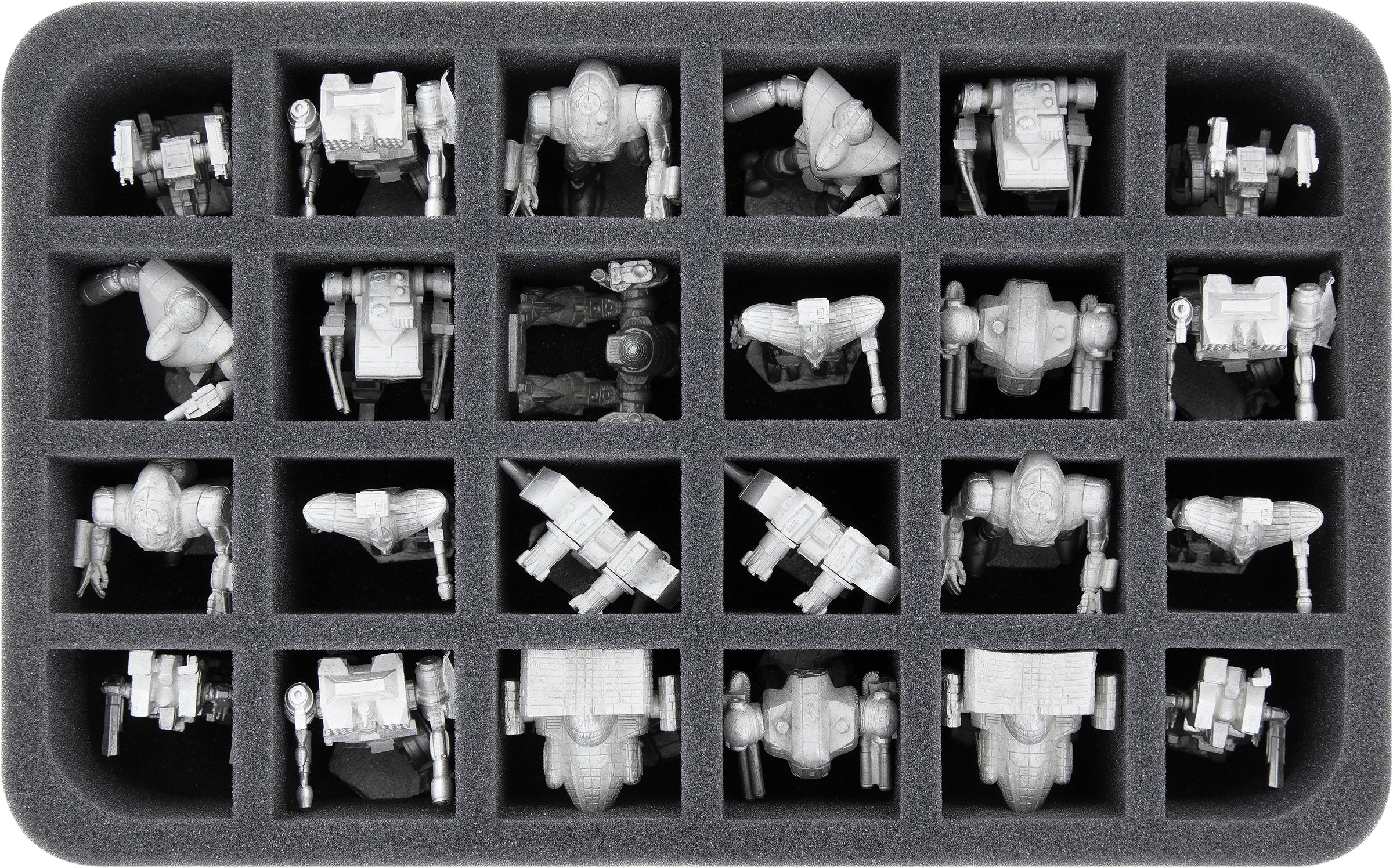 Precisely fitting compartments ensure that the miniatures have a tight fit and can not bump against each other. The soft, fine-pored foam reliably protects your models from damage. In case you have painted your battle machines, the foam protects the colors of your painted models from scratches and chipping paint.