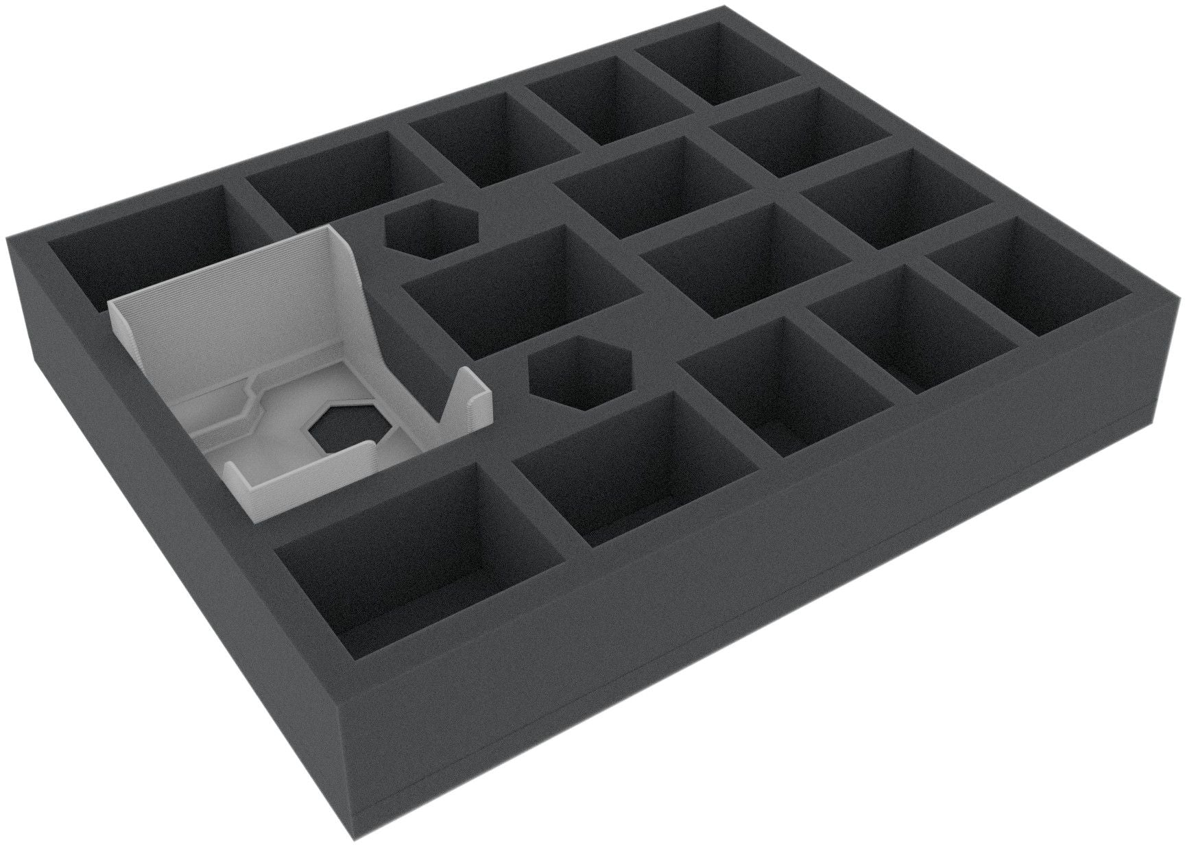 - 1 foam tray with custom-cut compartments for miniatures and game material