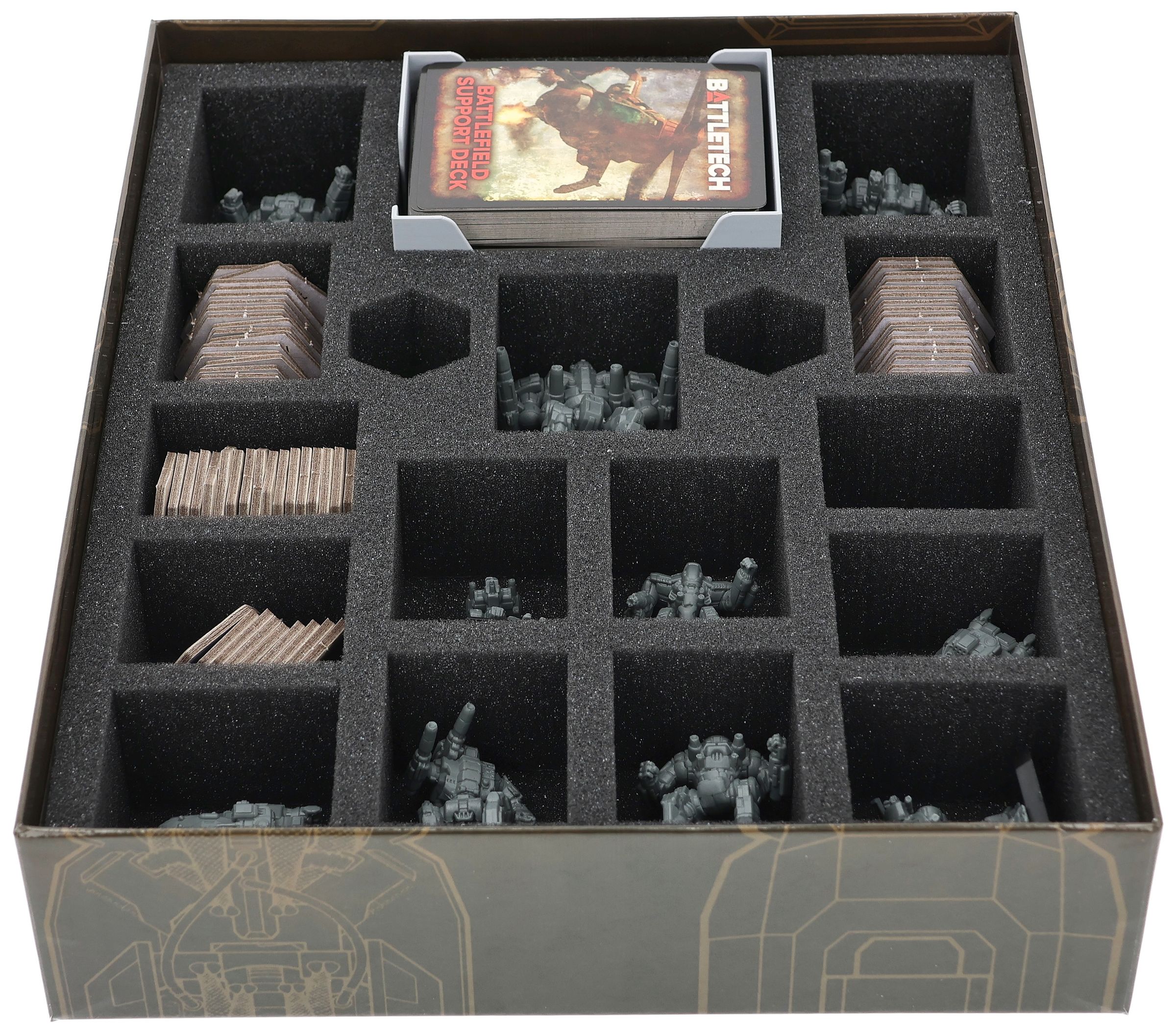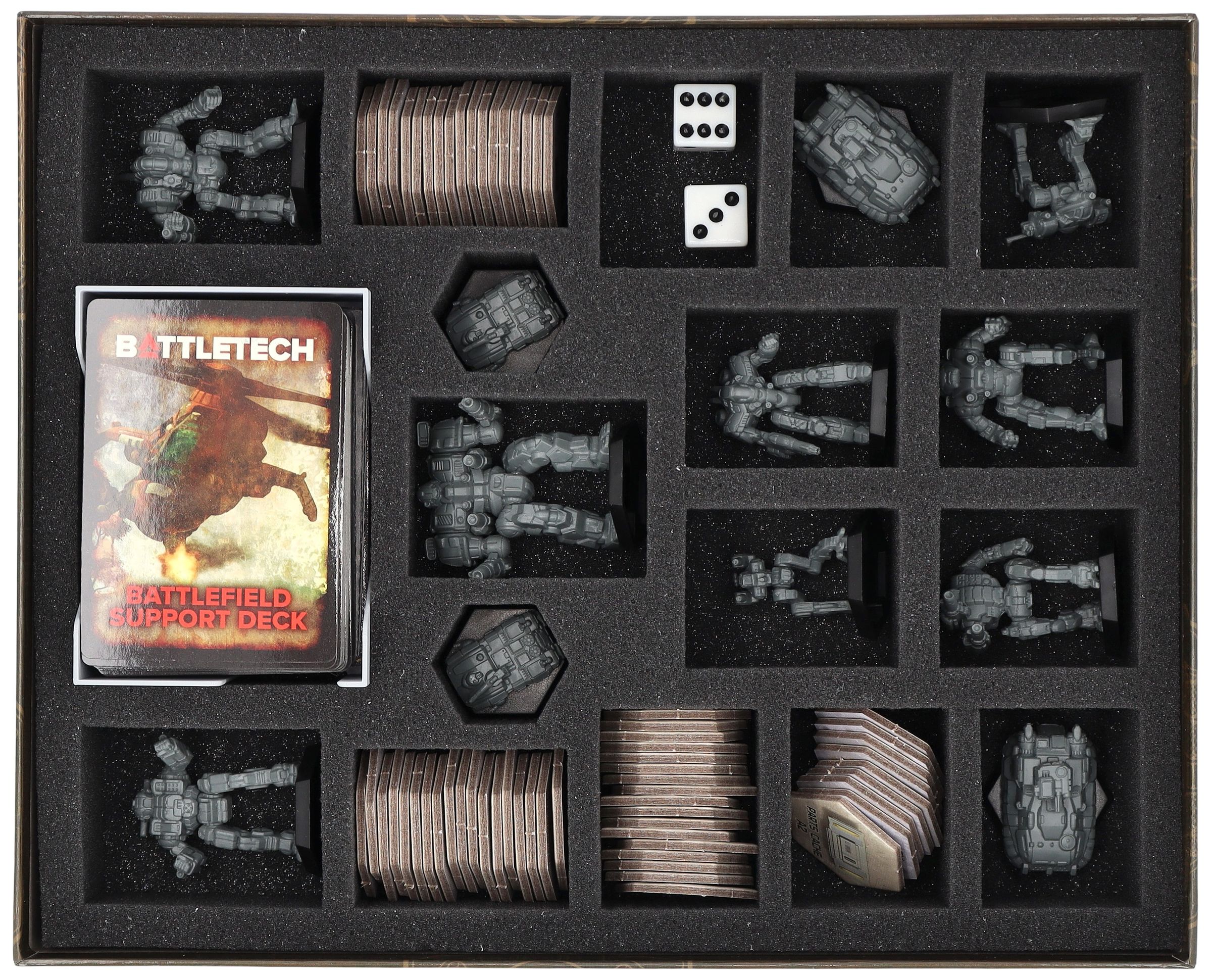 - Custom-designed foam insert for the original Battletech board game box: Limited Edition Mercenaries Box Set (dimensions of the insert: approx. 285 mm x 230 mm x 60 mm).