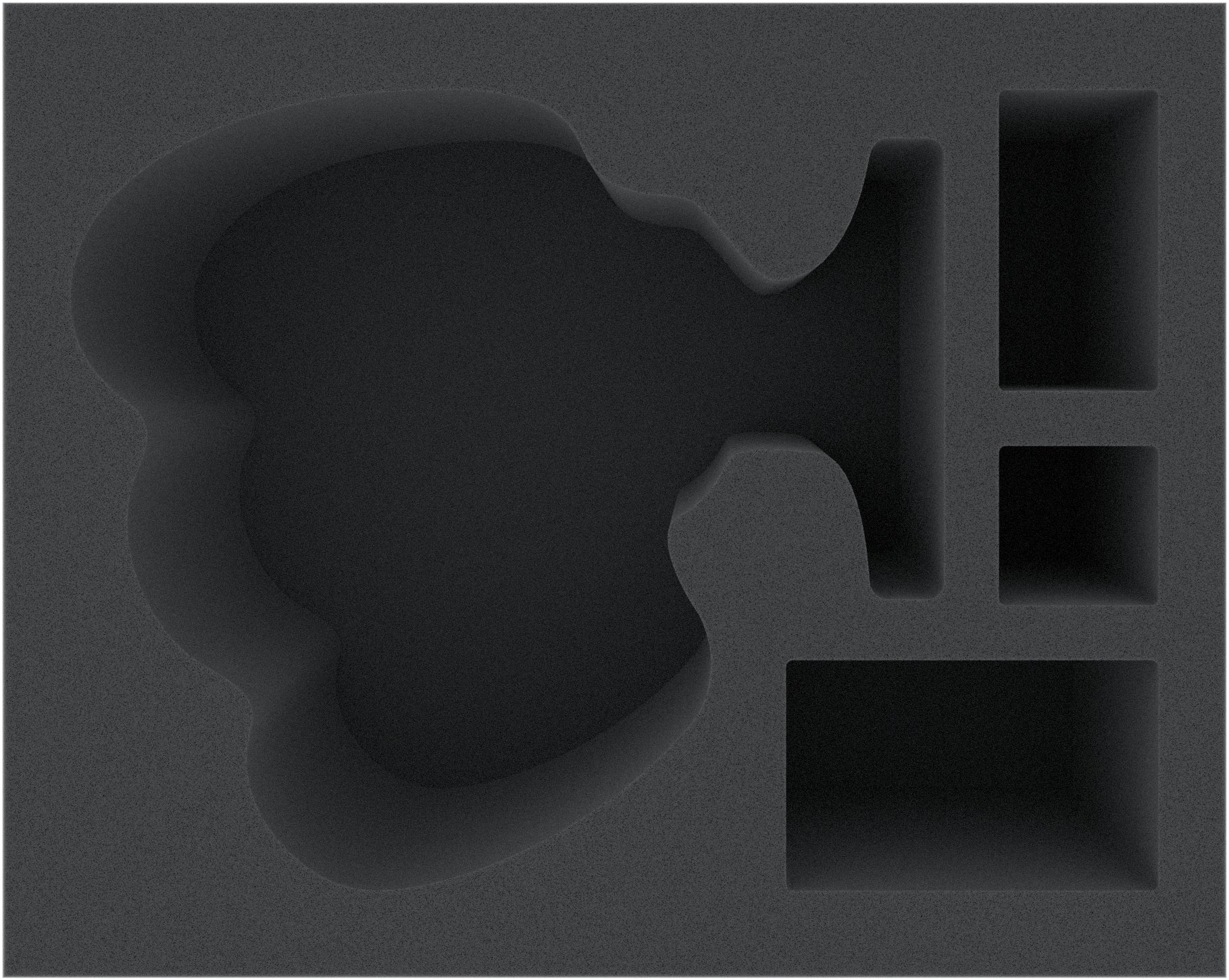 The foam tray has the dimensions: 345 mm x 275 mm x 130 mm total height (120 mm usable height + 10 mm foam base).