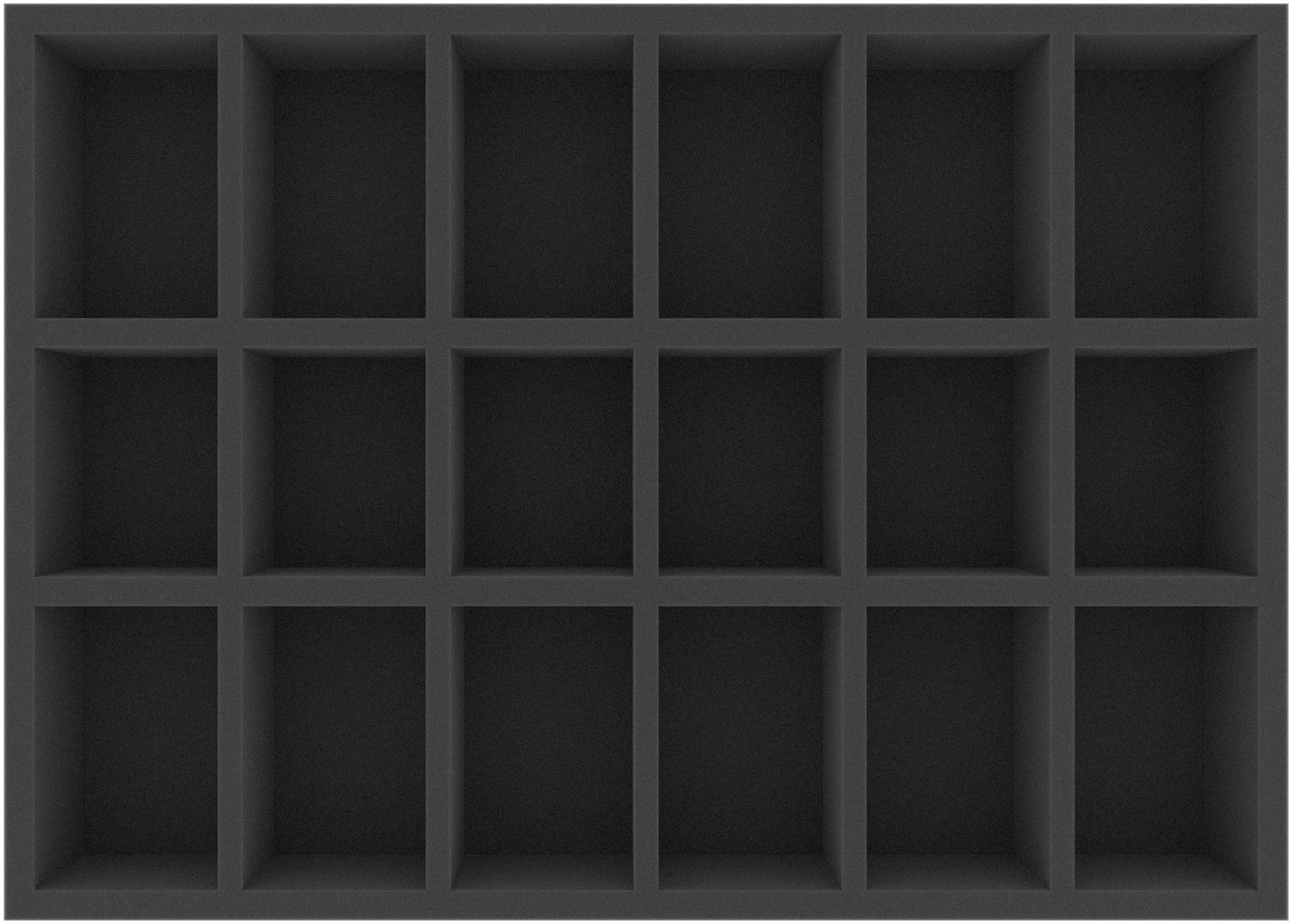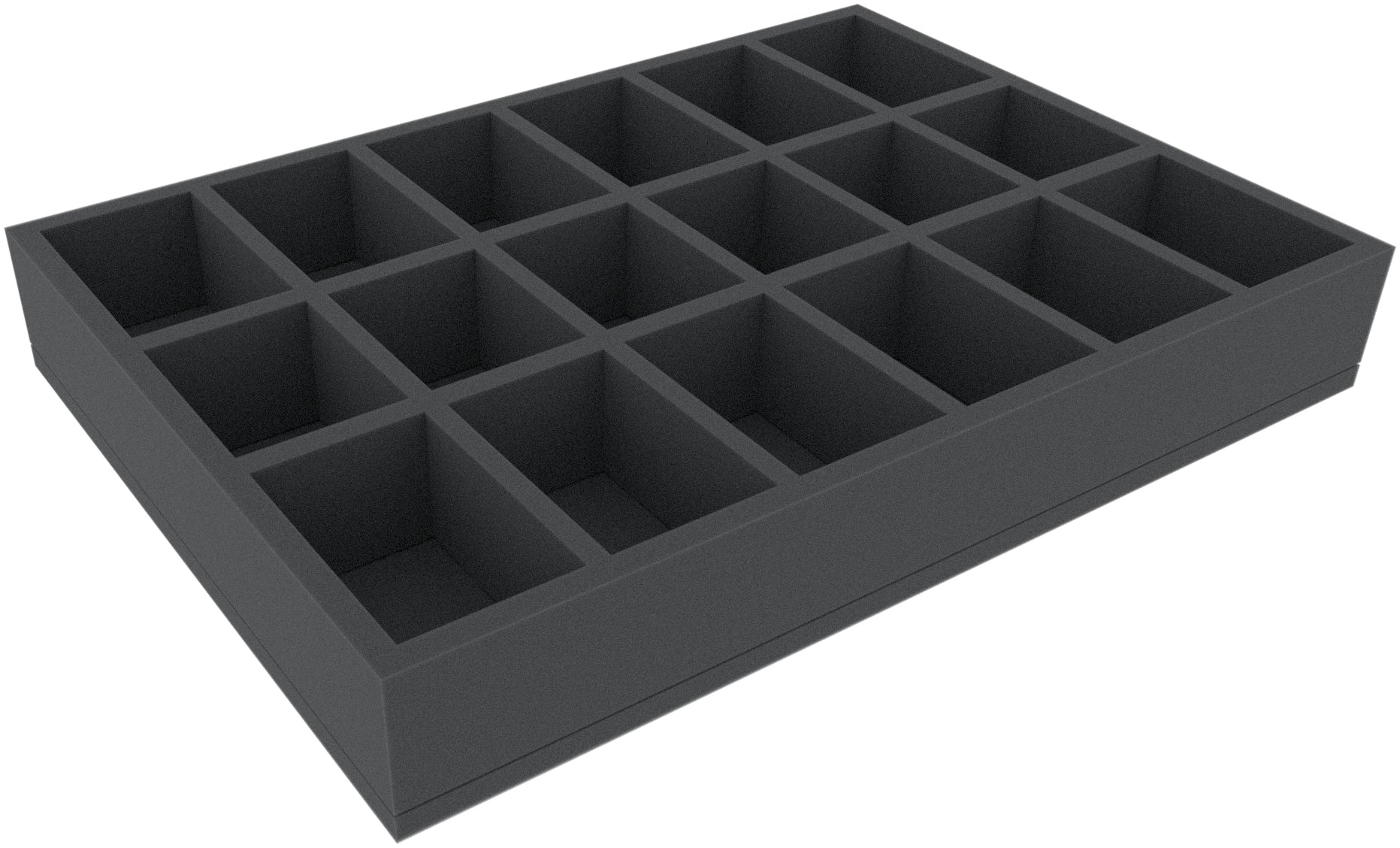 This 60 mm high foam tray is divided into 18 compartments. It is particularly suitable for the safe storage of tabletop and board game miniatures, as well as other fragile models and small parts.