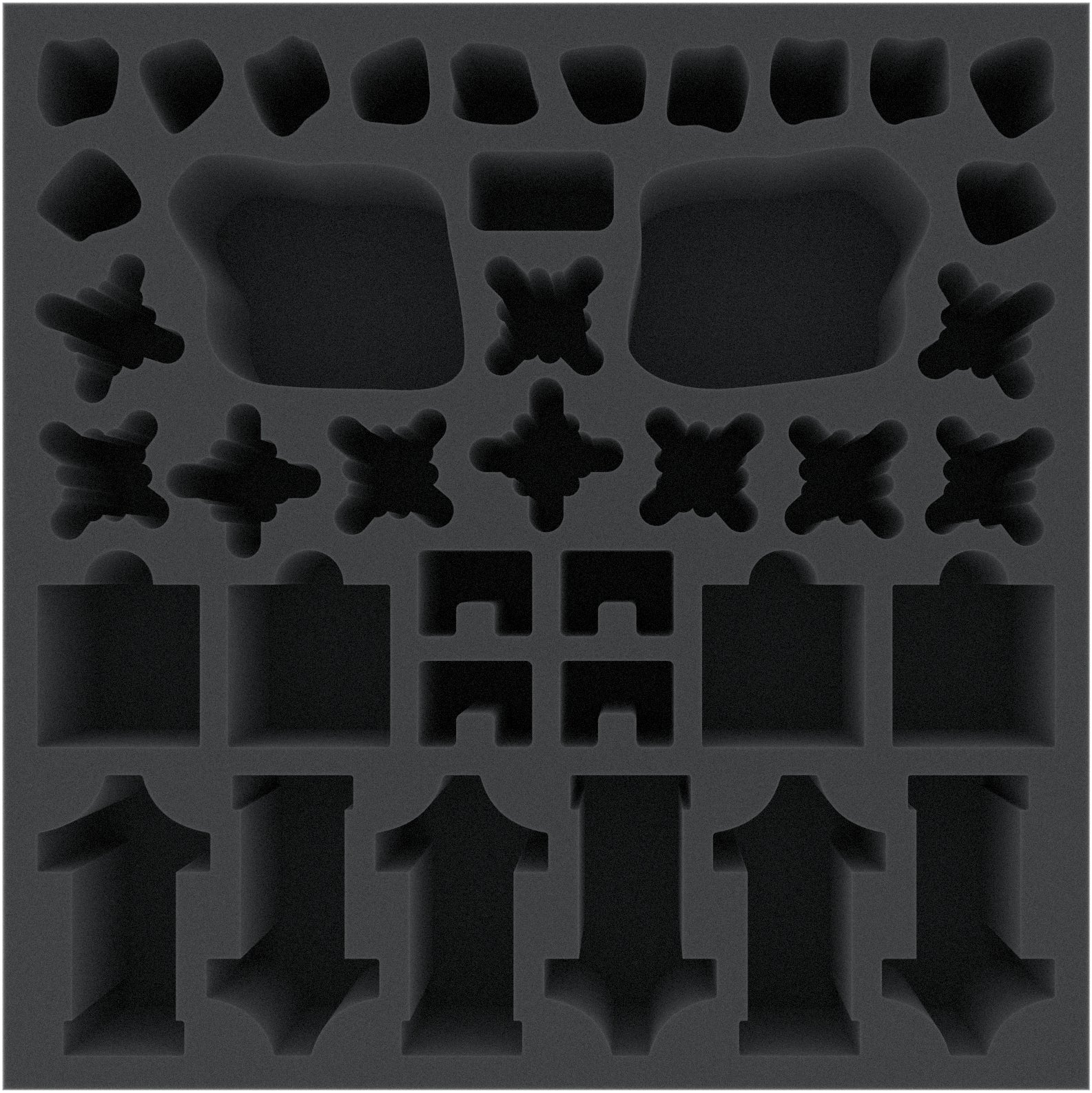 All 12 character miniatures are padded softly in the foam insert. Each of them are assigned a tailor-made compartment. Custom compartments are also available for the pavilions, trees and other assembled large decorations. The custom-fit cut helps with sorting and also ensures that nothing slips around during transport. The sensitive parts and edges of the models are thus optimally protected against damage. When you have painted your miniatures, you can be sure that the colors are spared from abrasion and annoying scratches.