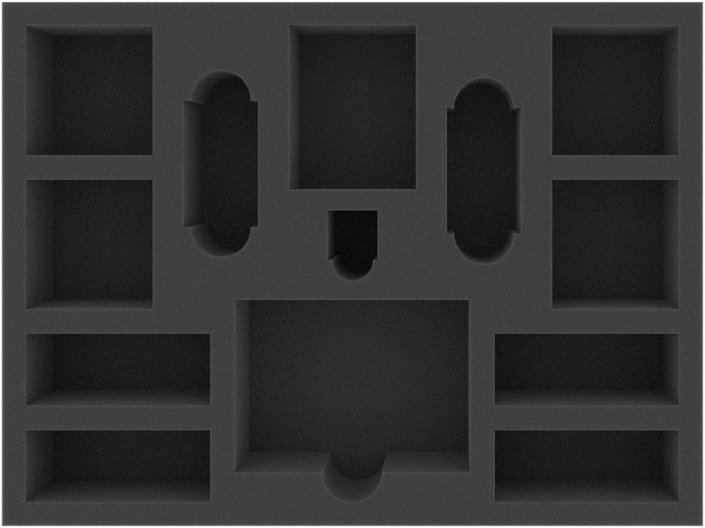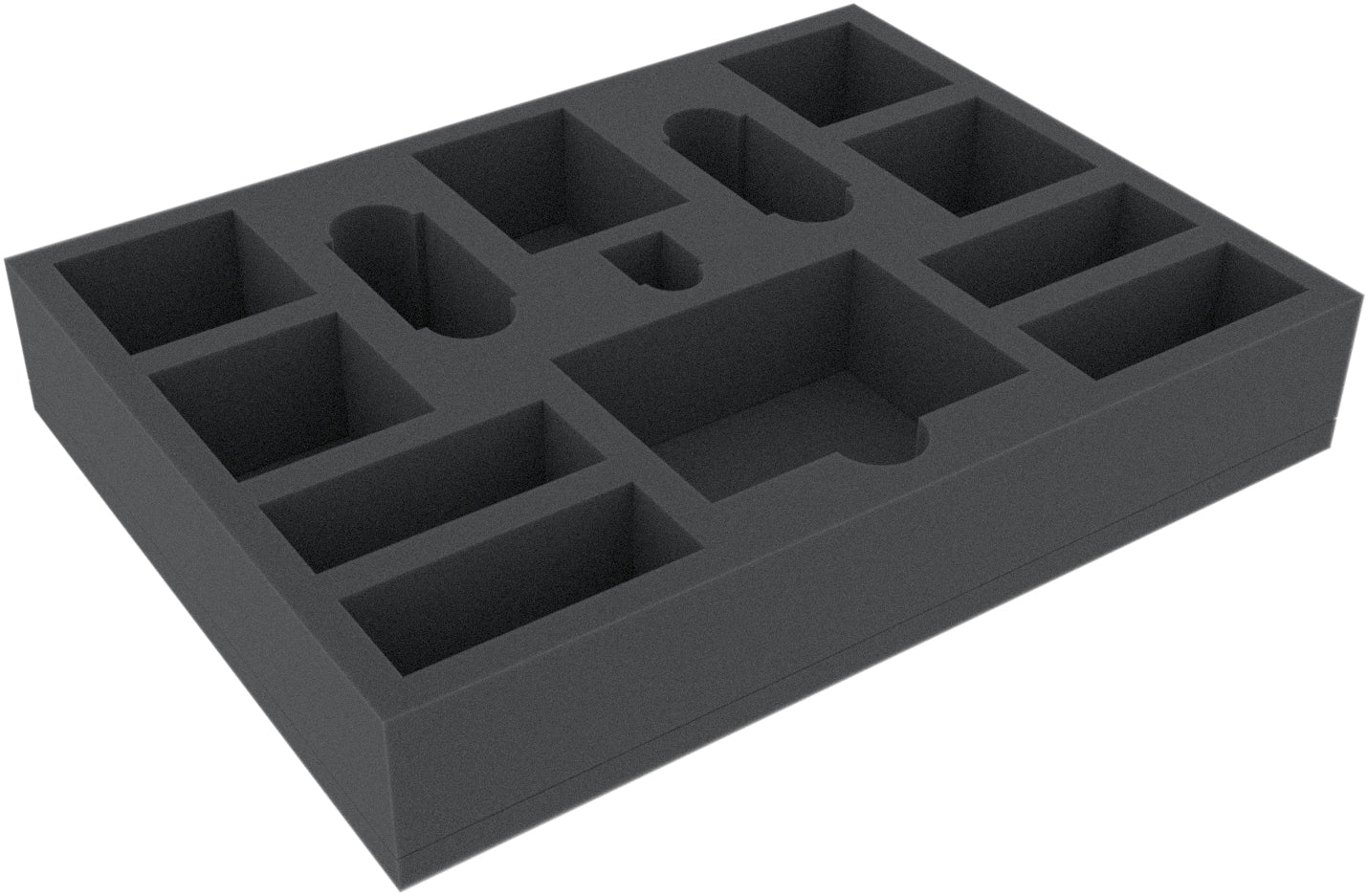 This 50 mm mm high foam tray is divided into 13 compartments. It is particularly suitable for the safe storage of tabletop and board game miniatures, as well as other fragile models and small parts.