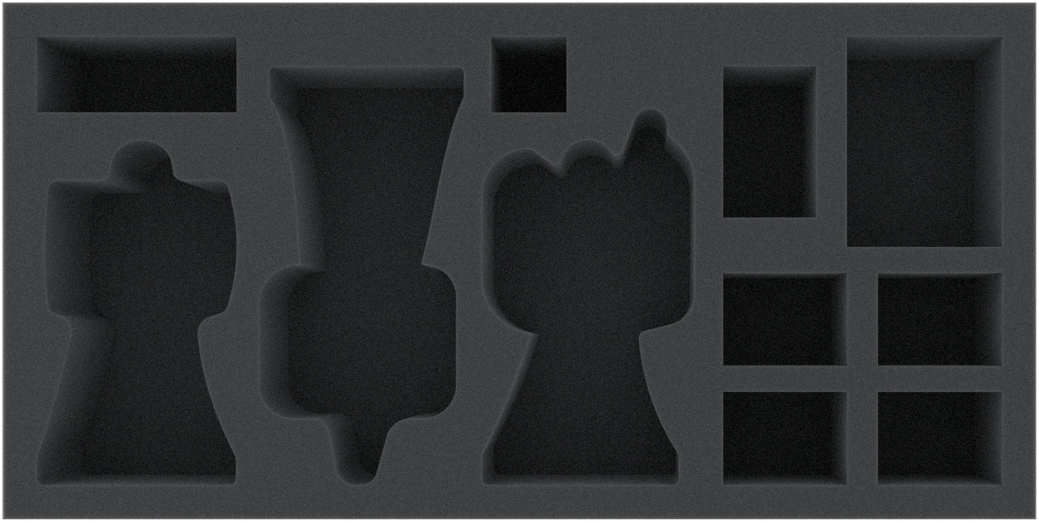 For Beor, Ailei, Arev, Maggot, as well as fifth heroine in the bunch, Niamh, five compartments are reserved on the foam insert. Also, the three Menhir models and the Fore-Dweller are each assigned an individually tailored compartment. The custom-fit cut helps with sorting and also ensures that nothing slips around on the way. The sensitive parts of the figures are thus optimally protected against damage. If you paint your models, you can be assured that the colors are still unharmed after transport.