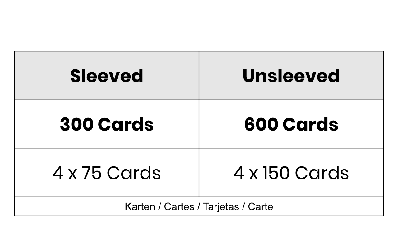 - up to 300 cards with sleeves