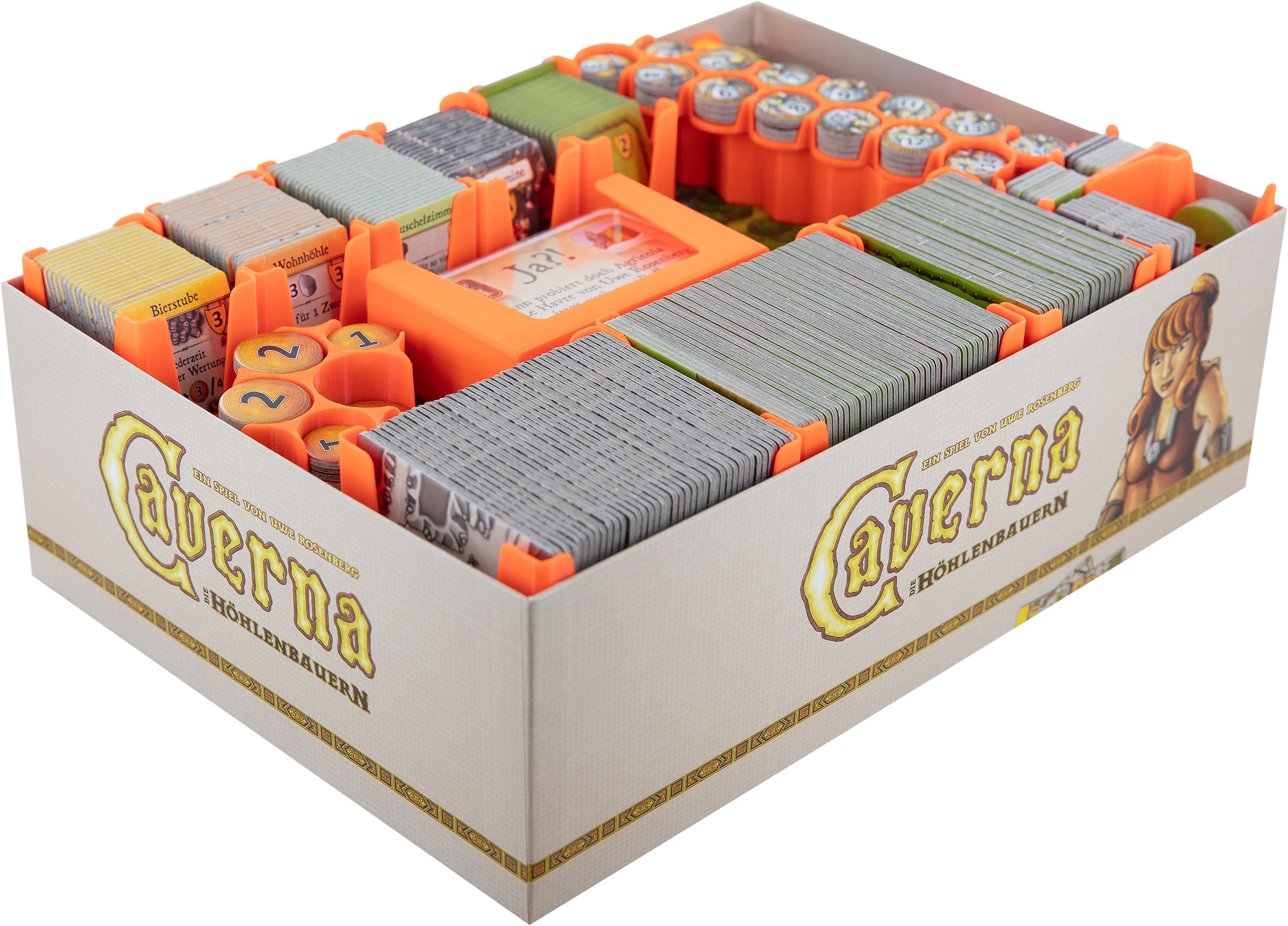 - The Organizer offers space for all game components from the "Caverna - The Cave Builders" core game by Lookout Games.