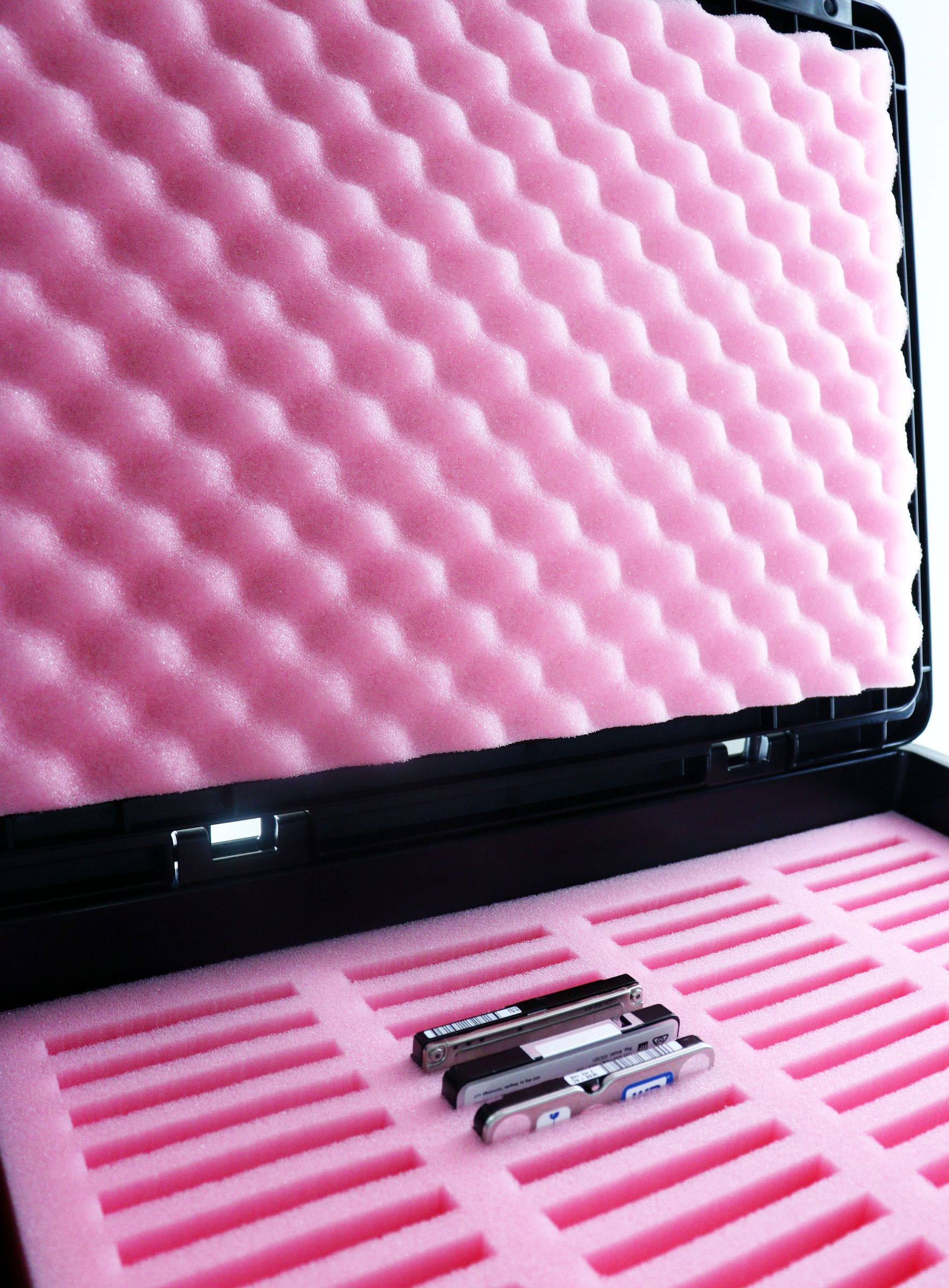 This professional ESD Eurobox MAXI enables organized storage and safe transport of up to 60 hard drives (2.5"), electronic devices and components. With precise cutouts of 70x8x90mm, the system is optimal for SSD/HDD hard drives, printed circuit boards and various electronic components.