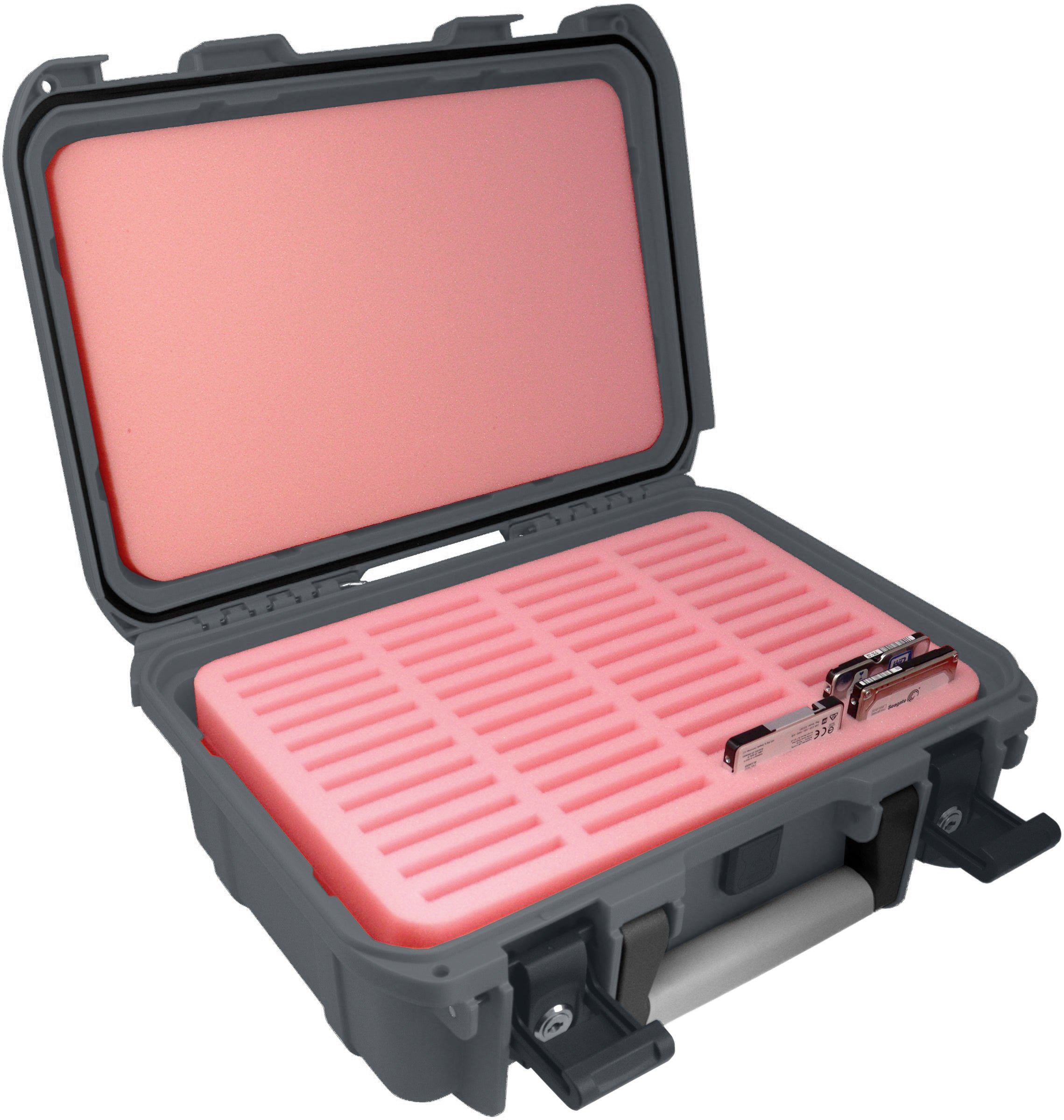 This Feldherr ESD foam set with enables clear storage and safe transport for up to 48 SSD / HDD hard drives (2.5''), electronic devices and components.
