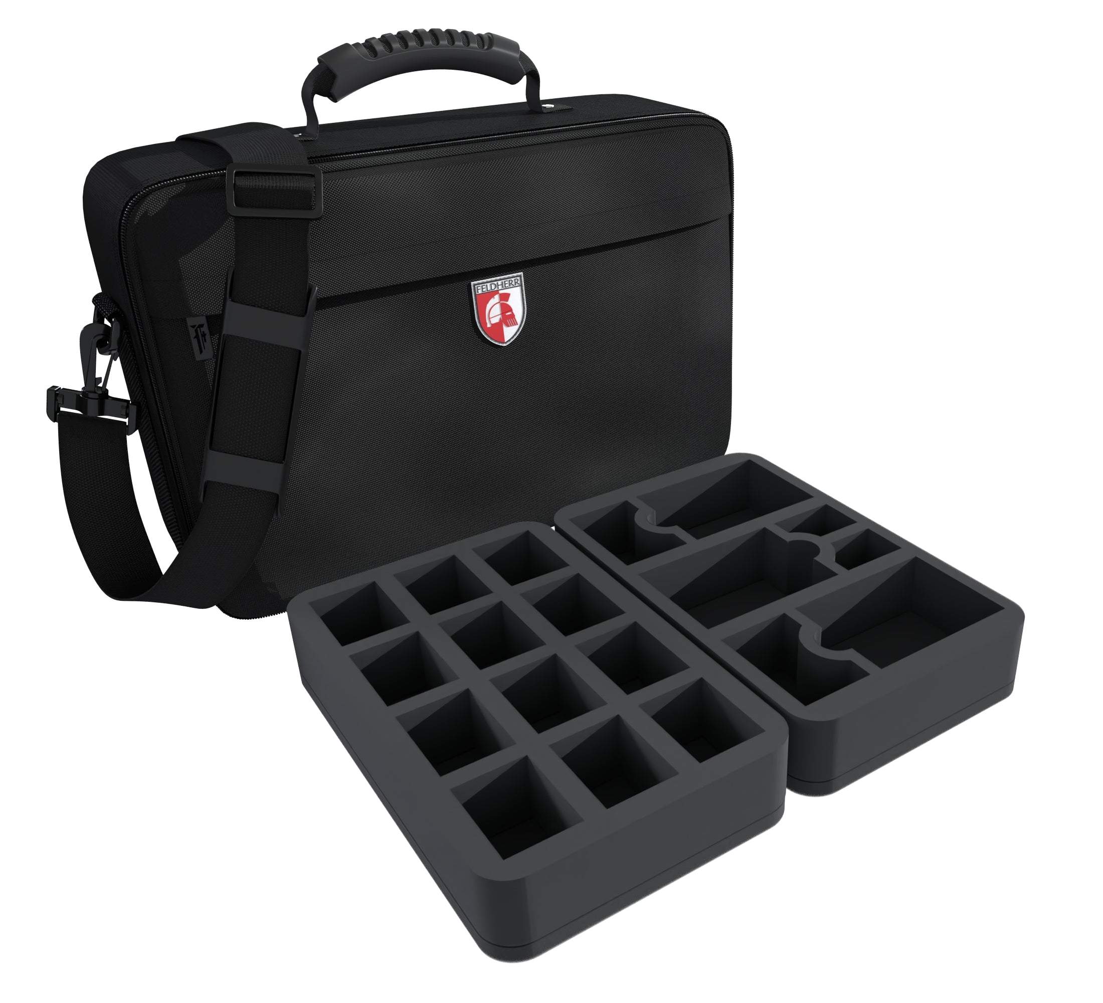 This compact MEDIUM bag keeps your miniatures optimally protected. With custom Feldherr foam trays, you can safely transport up to 35 miniatures and game materials from Warhammer 40.000: Darktide to the game table.