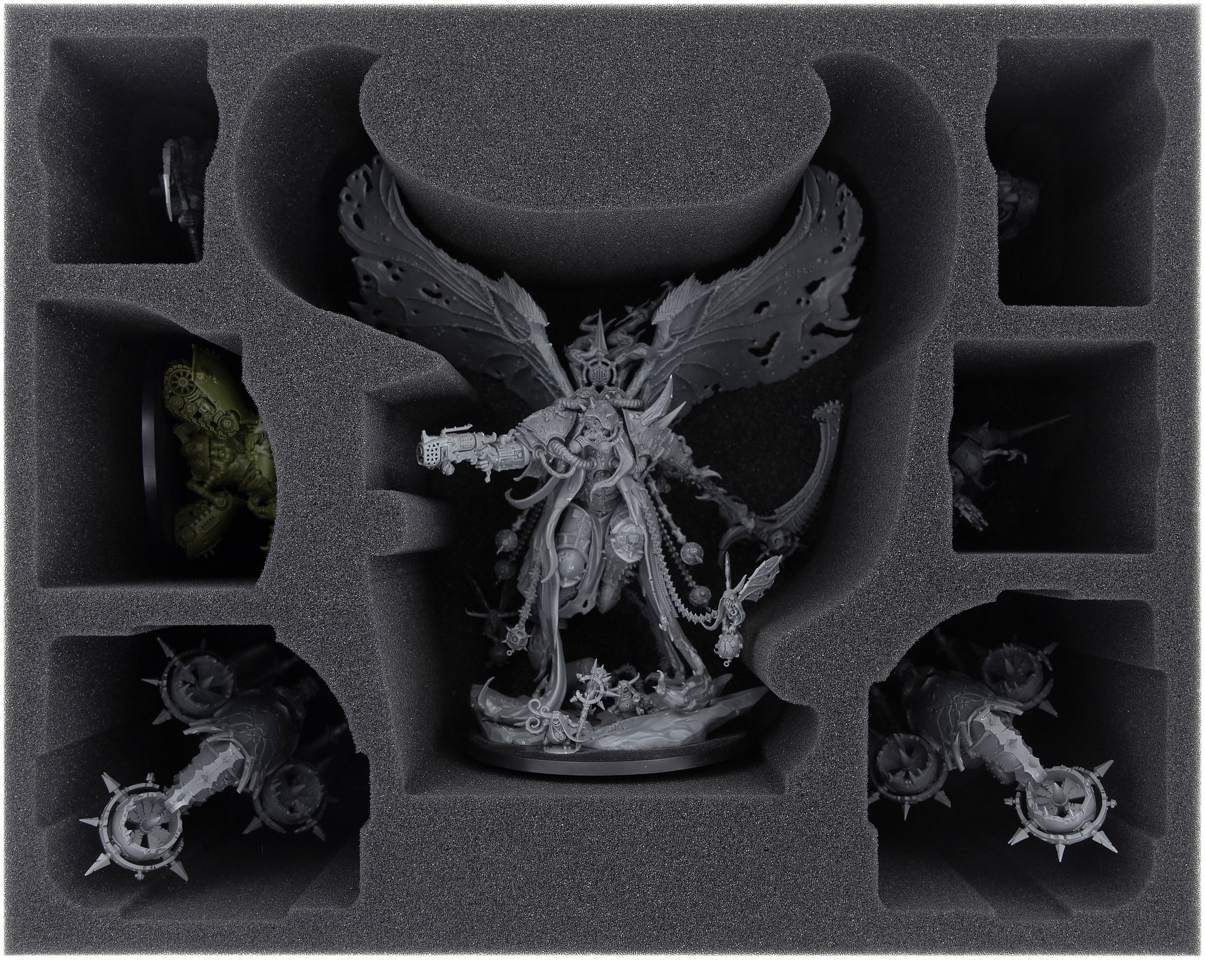 In order to keep these massive wings, the scythe and Nurgling Drones intact, we designed this Full-Size foam tray for you. With a compartment tailored exactly to Mortarion, it offers optimum protection for this masterly GamesWorkshop model.