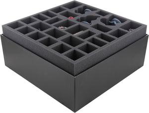 Le soluzioni di stoccaggio adatte a Deep Madness aiutano a organizzare in modo sicuro le miniature, i segnalini e le carte e a mantenere il vasto materiale di gioco chiaramente organizzato per la prossima missione horror - a casa e durante il trasporto.