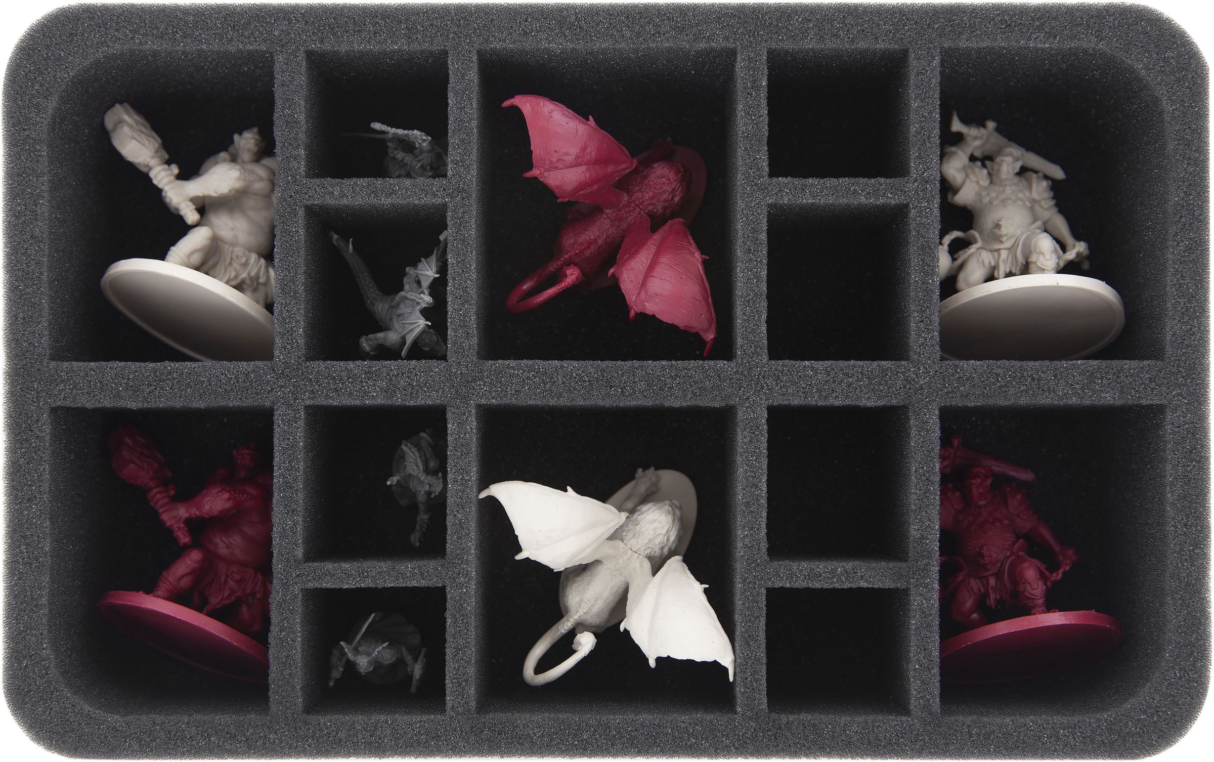 - 1 Half-Size foam tray with 14 compartments for miniatures (HSMEDK060BO)