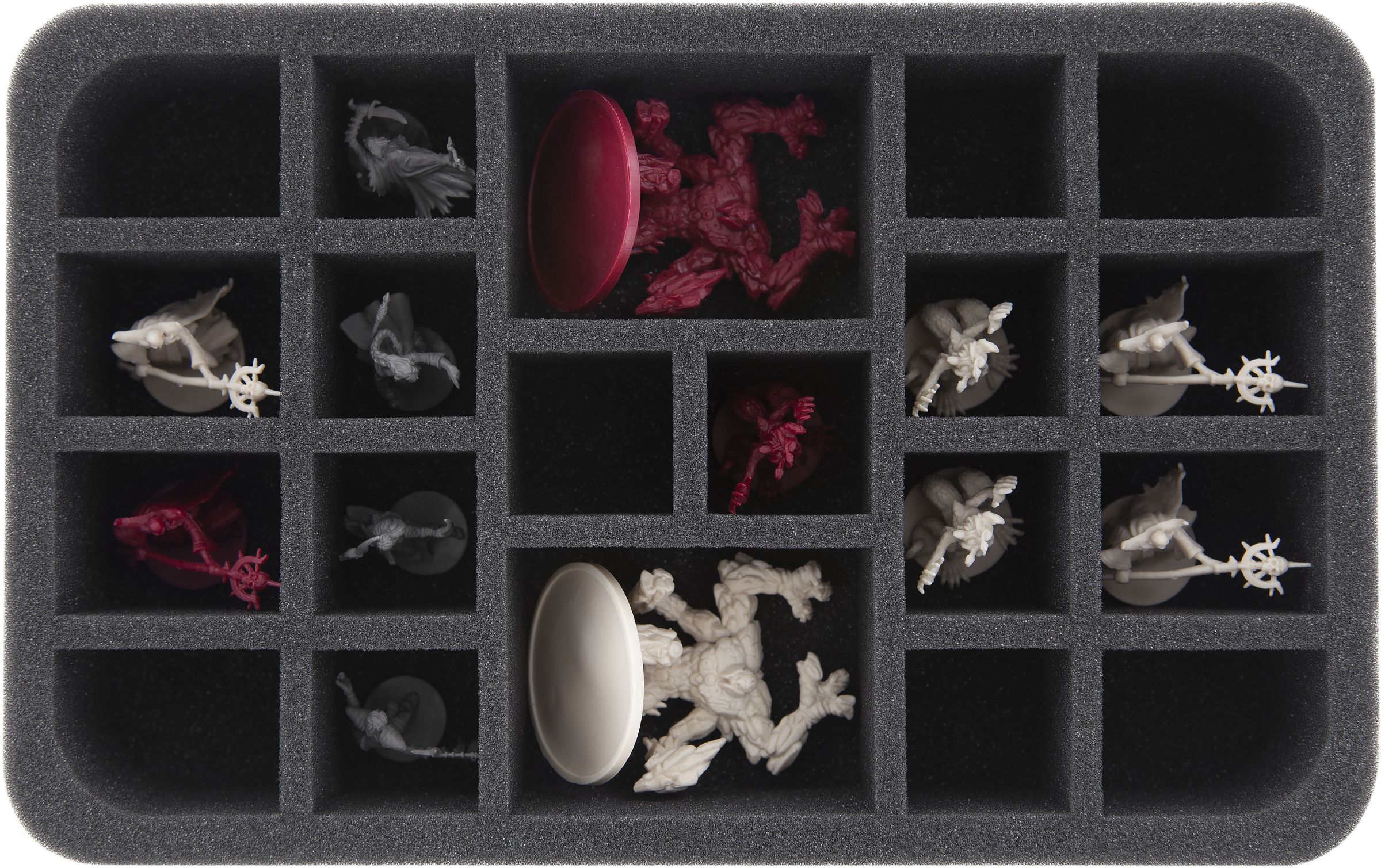 The Hero and Monster Collection "Crusade of the Forgotten" for Descent: Journeys in the Dark Second Edition adds new variety to your game. In order that you keep the overview and the new miniatures are padded softly, we created this foam tray for you.
