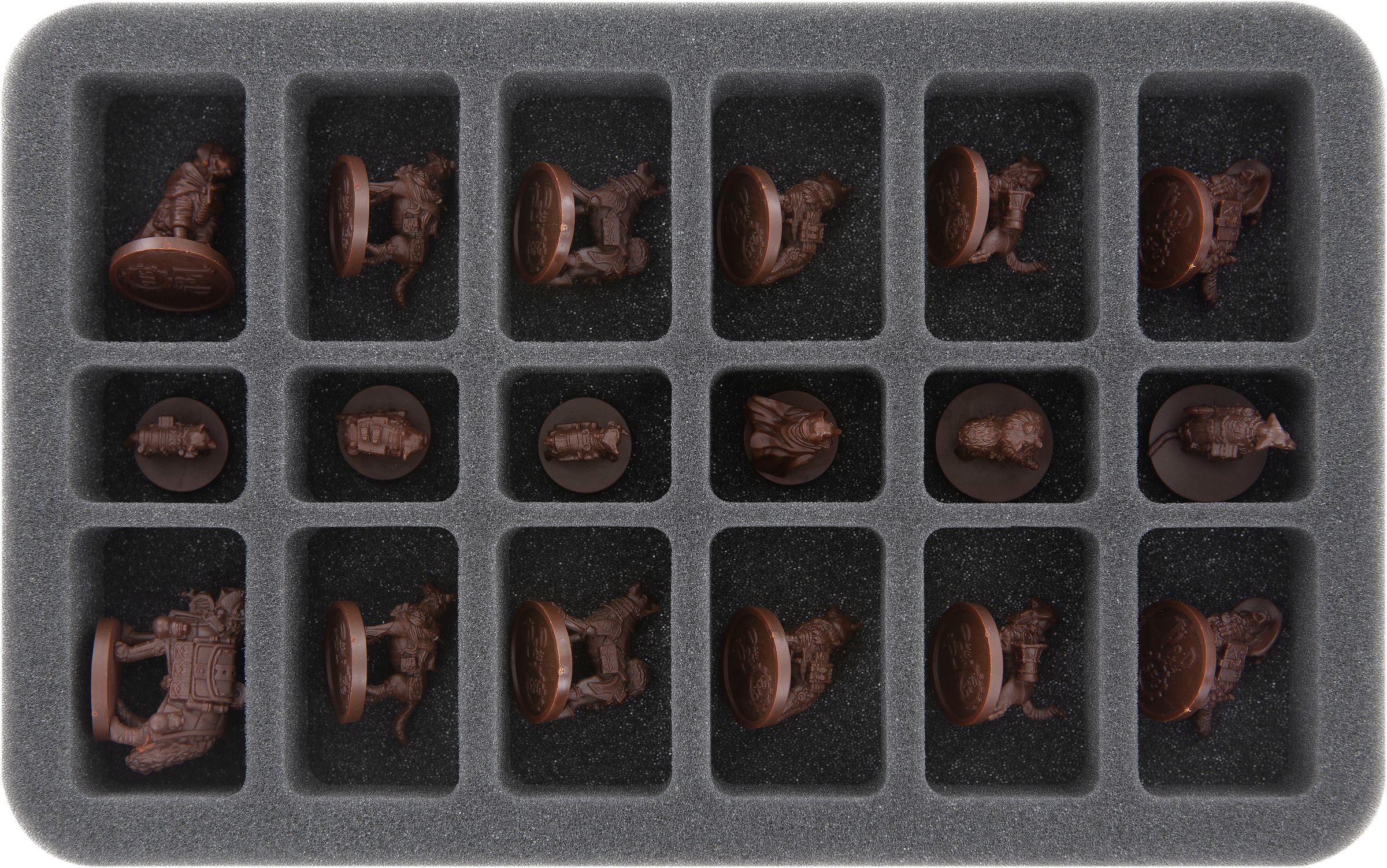 - 1 Half-Size foam tray for 18 miniatures in Tiny / Small / Medium (HS035BF01BO)
