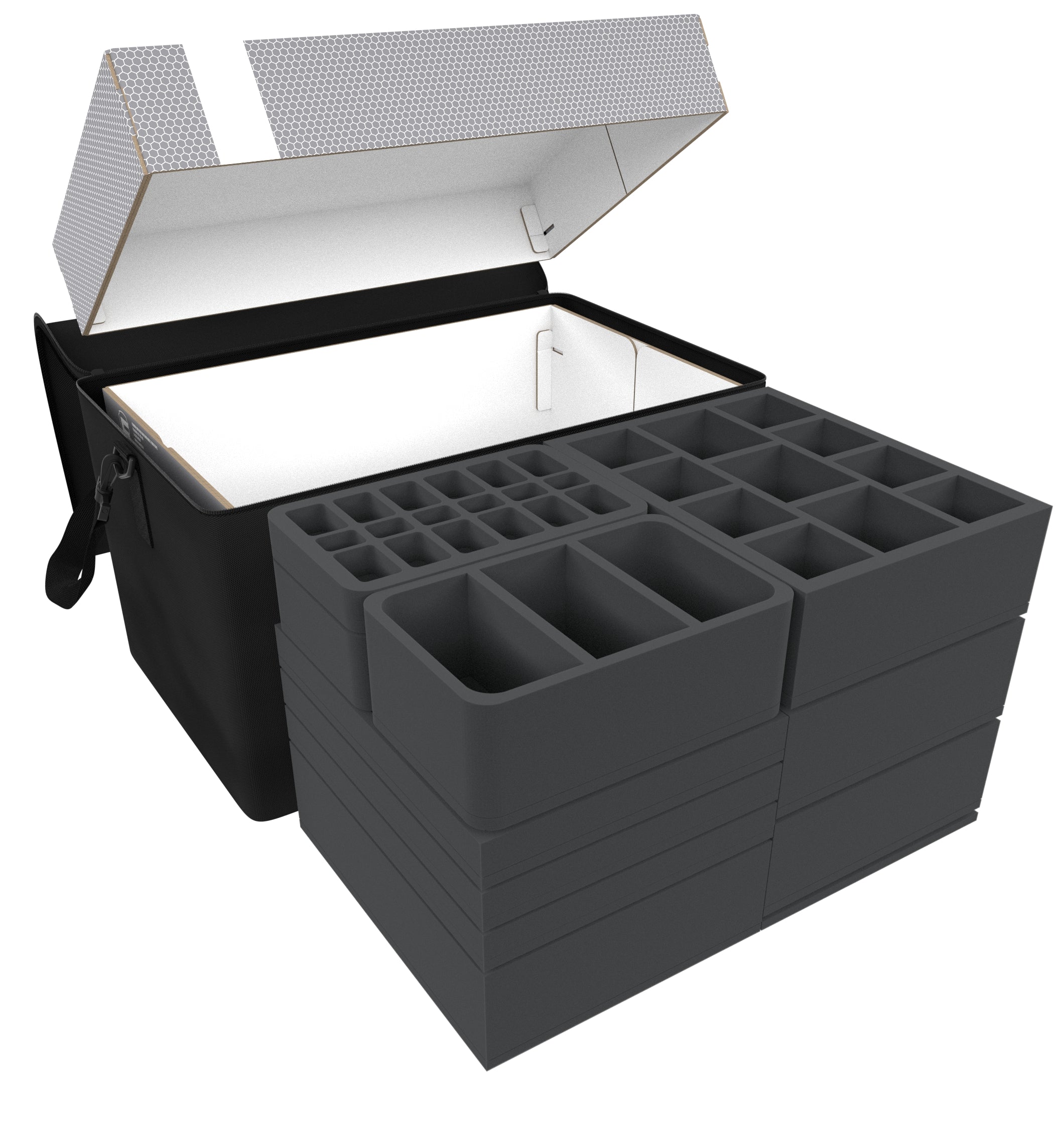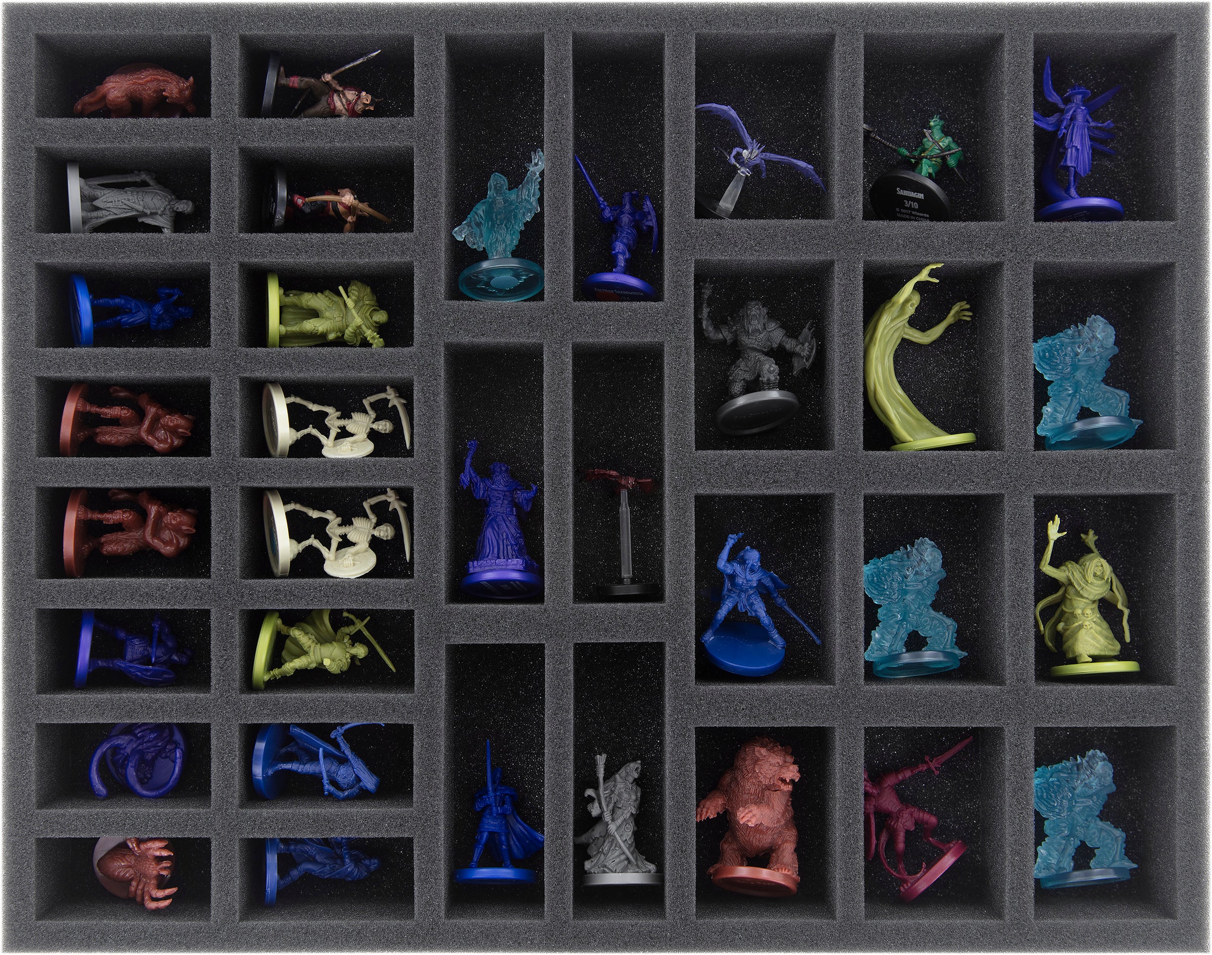 You can store a wide variety of models on 10 foam trays. From Goblin to Giant, from Small to Huge - The package offers space for more than 170 miniatures.