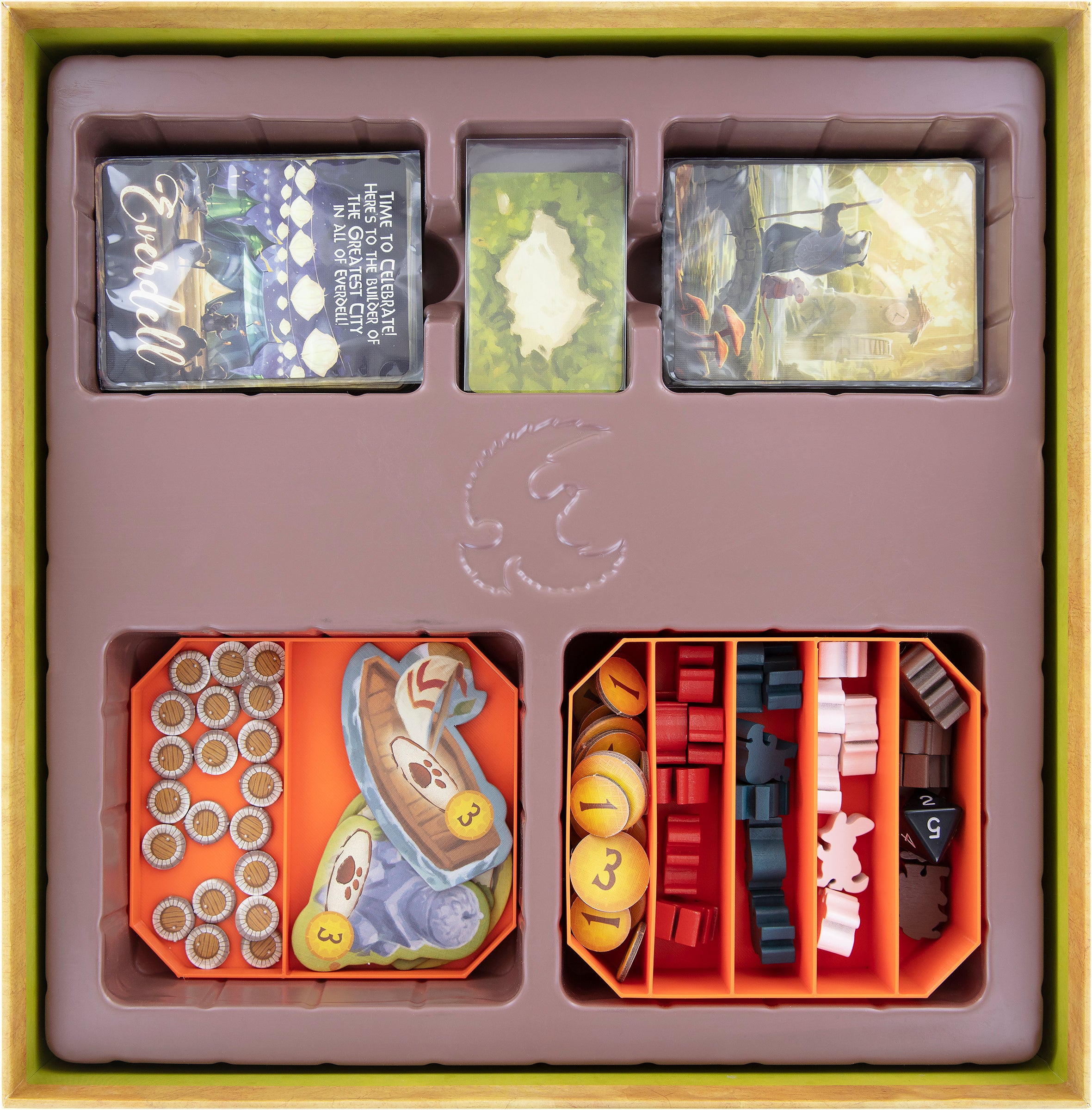 - The Organizer fits inside the original board game box and offers space for the entire game material of Everdell by Starling Games.