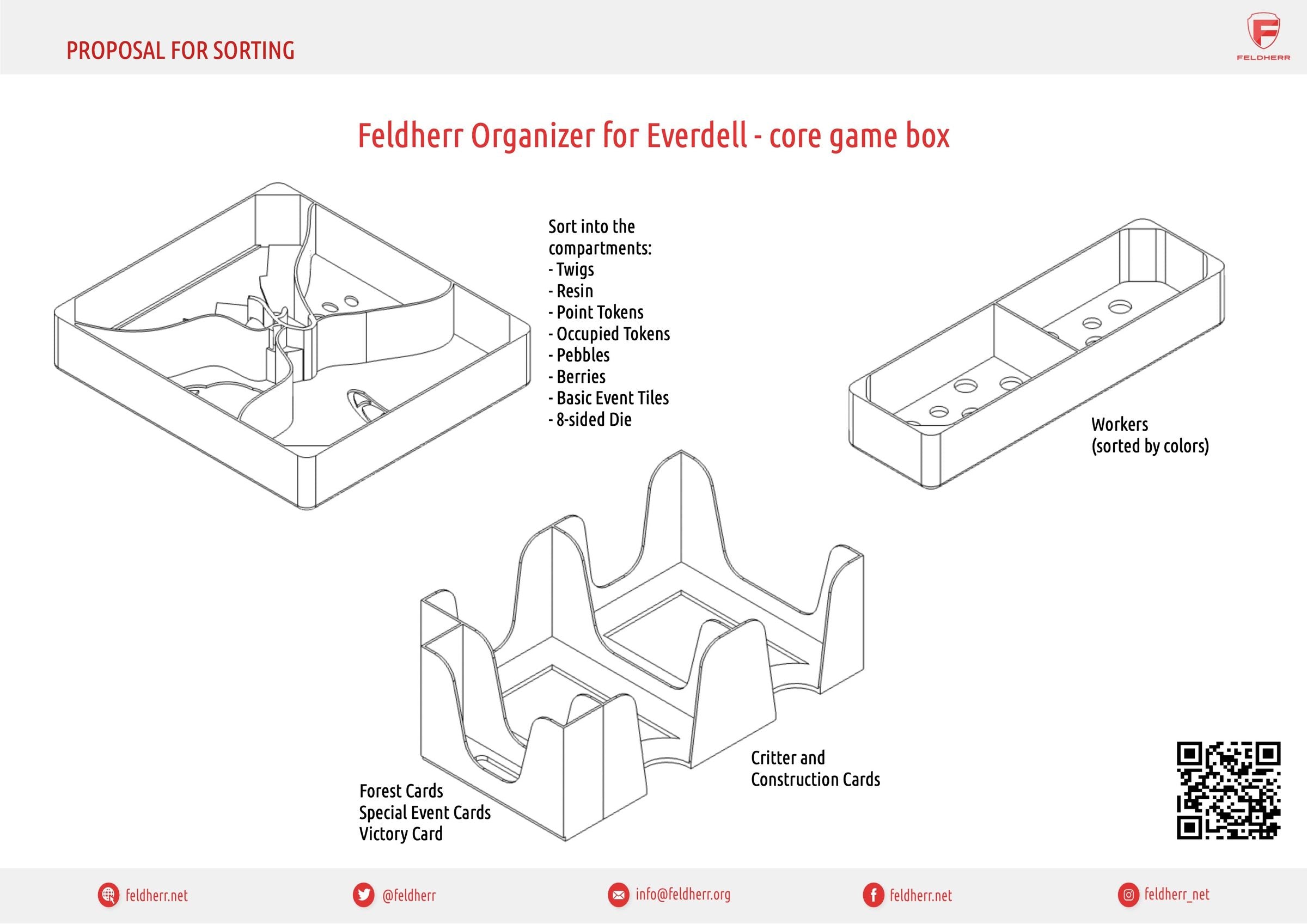 - The Organizer replaces the insert included in the game. It fits inside the original board game box and provides space for all of Everdell's game materials.
