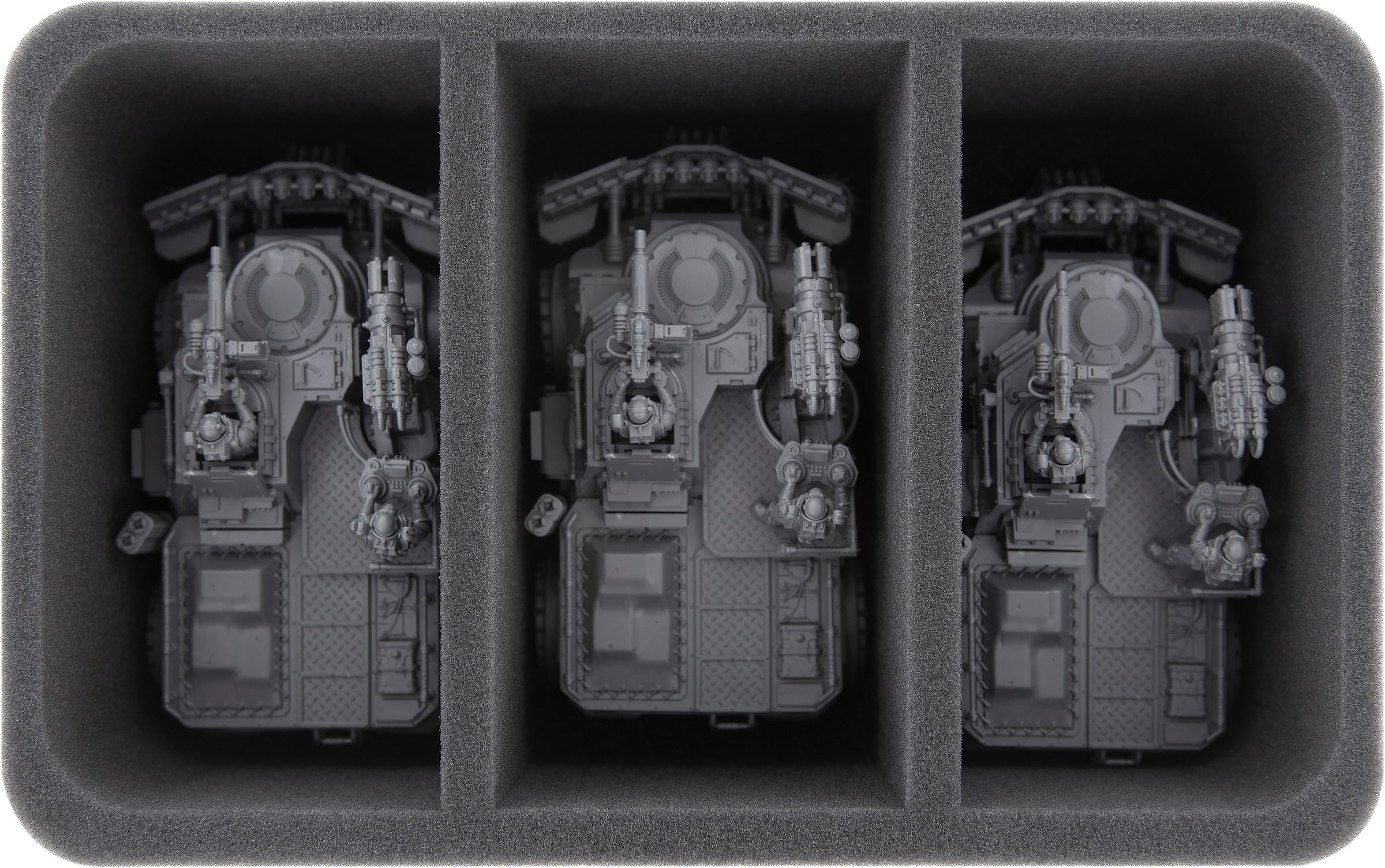 - 1 foam tray with 3 compartments for Goliath Rockgrinder and 2 additional miniatures (HSDF100BO)