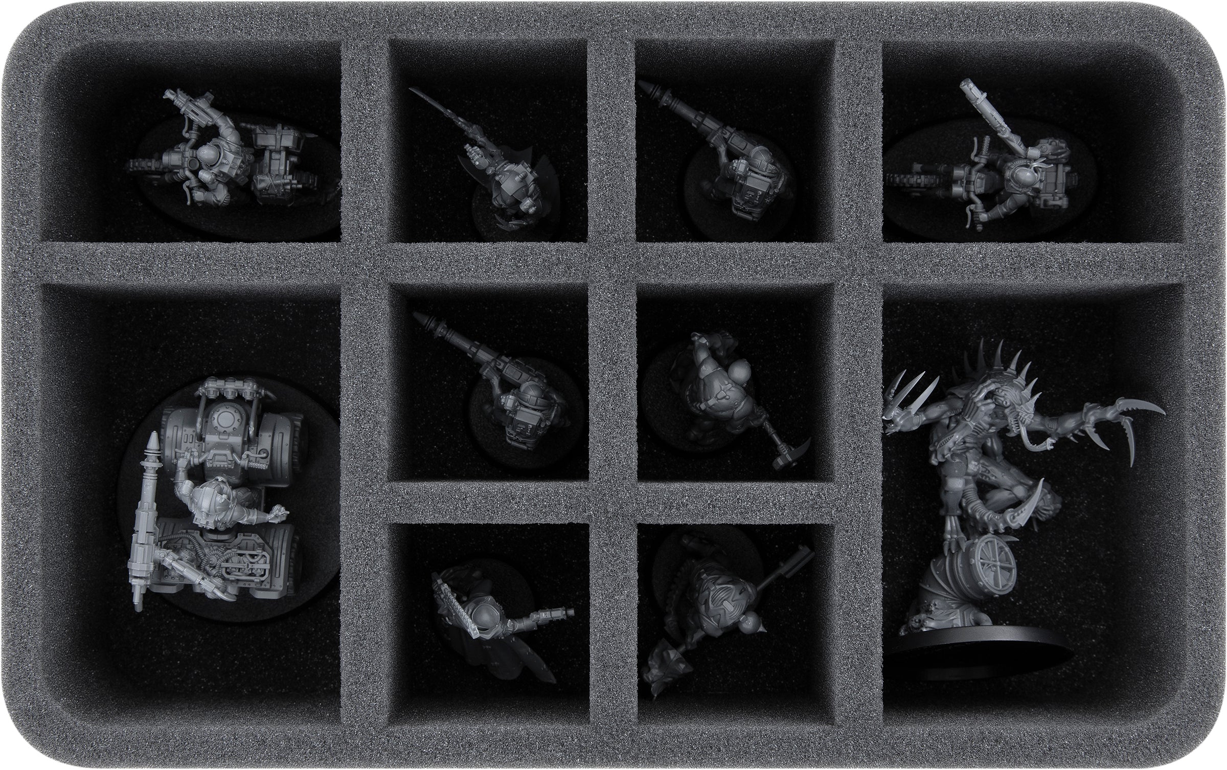 - 1 Half-Size foam tray with 12 compartments for e.g. Kelermorph, Aberrants, Acolyte Hybrids, Hybrid Metamorphs (HS050A002)