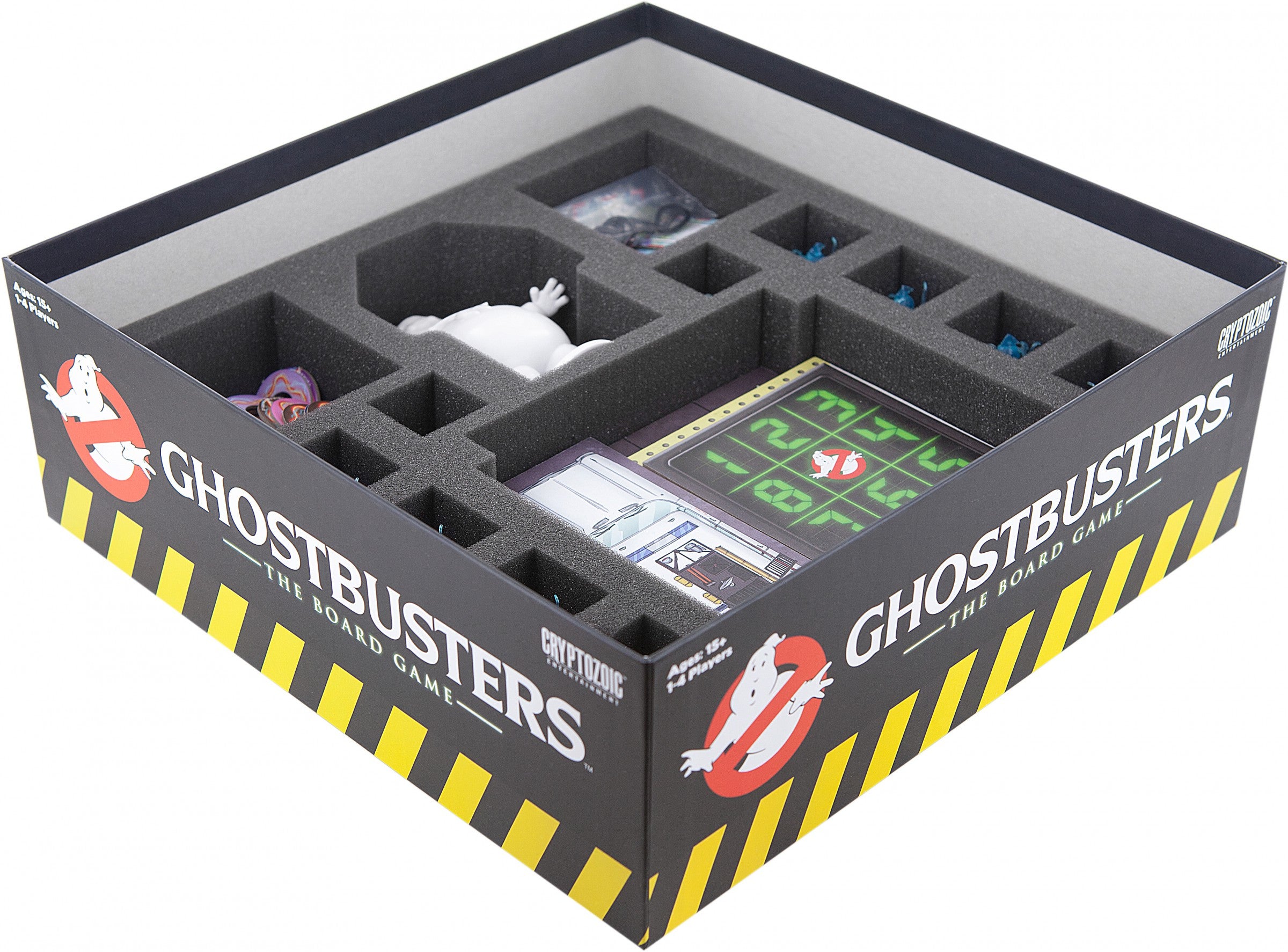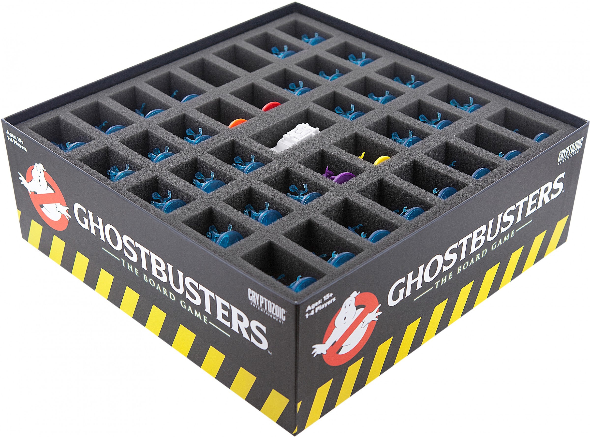 Protective foam tray for the Ghostbusters board game box. Foam tray provides a great solution for protecting all figures, board game tiles and tokens from the original board game box. For optimal protection there is an additional 10 mm foam topper included.