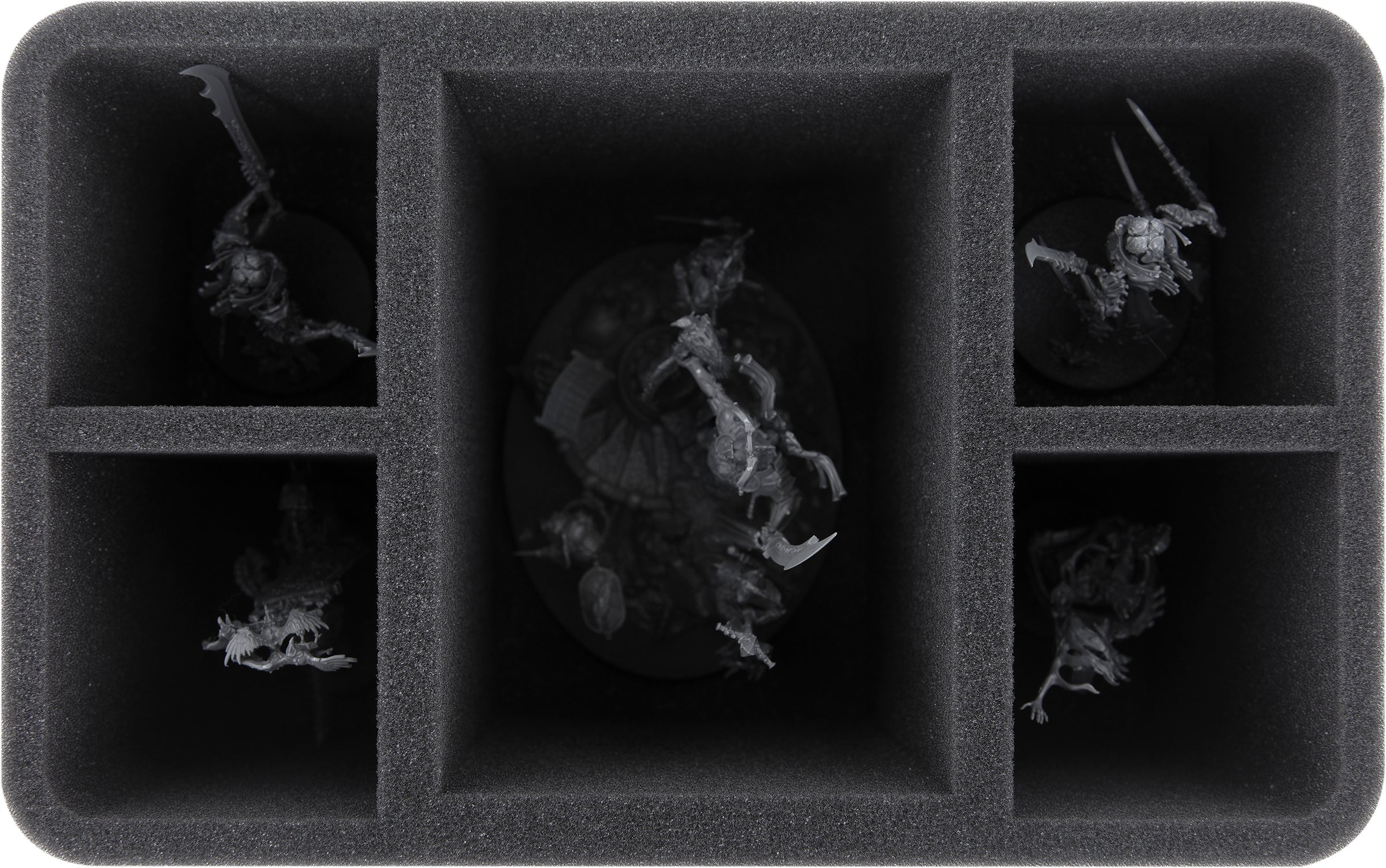 In the large compartment in the middle, the Katakros model stands safely and completely surrounded by foam. Thus, he and his entourage are excellently protected from damage with all filigree details. Also the colors of the fully painted miniature are thus spared from scratches and abrasion.