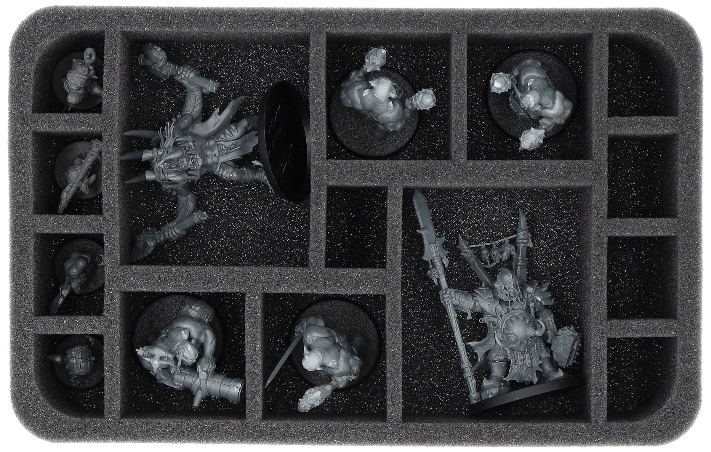 • 1 x HS065A015 – Half-Size foam tray with 15 compartments for e.g. Leadbelchers, Gluttons, Gnoblars, Clawback