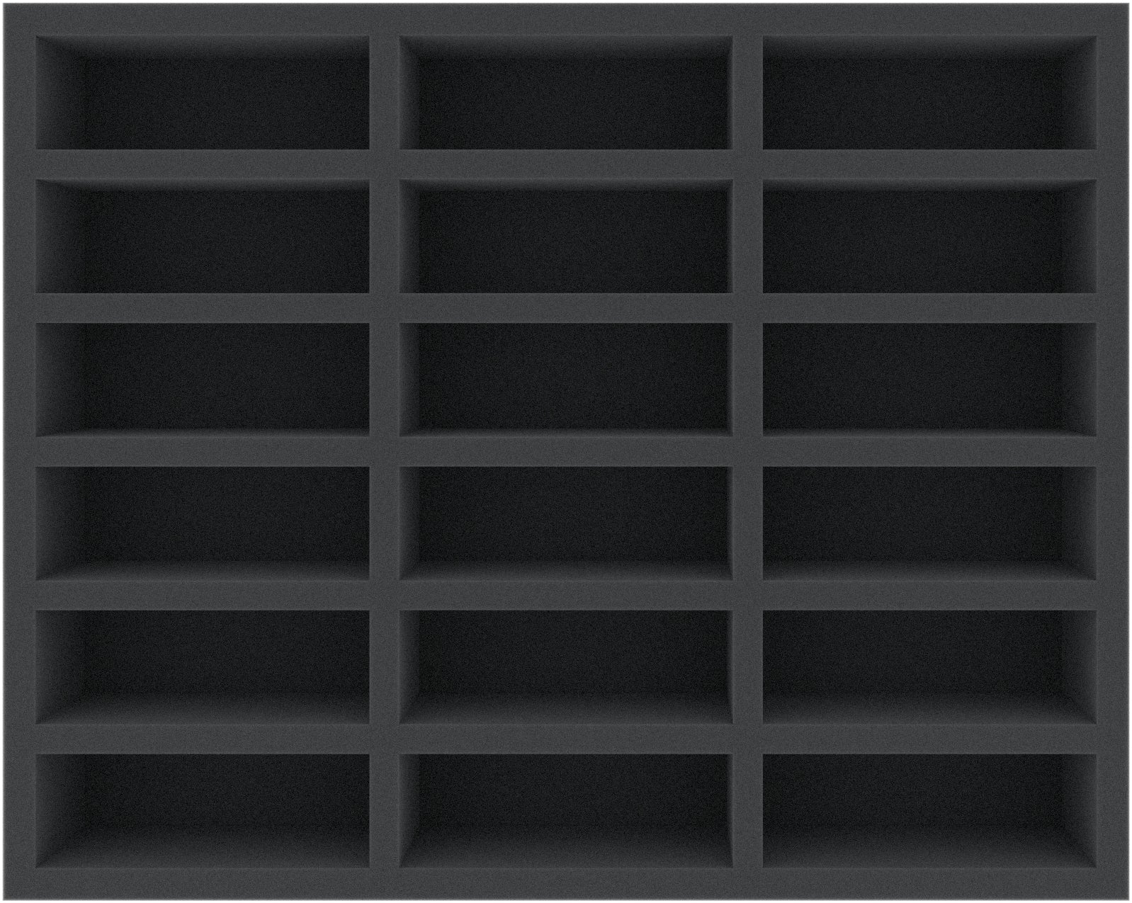 On this Full-Size foam tray you have 18 compartments of the same size, in which up to 18 longish models of the Gloomspite Gitz can be safely and neatly accommodated.