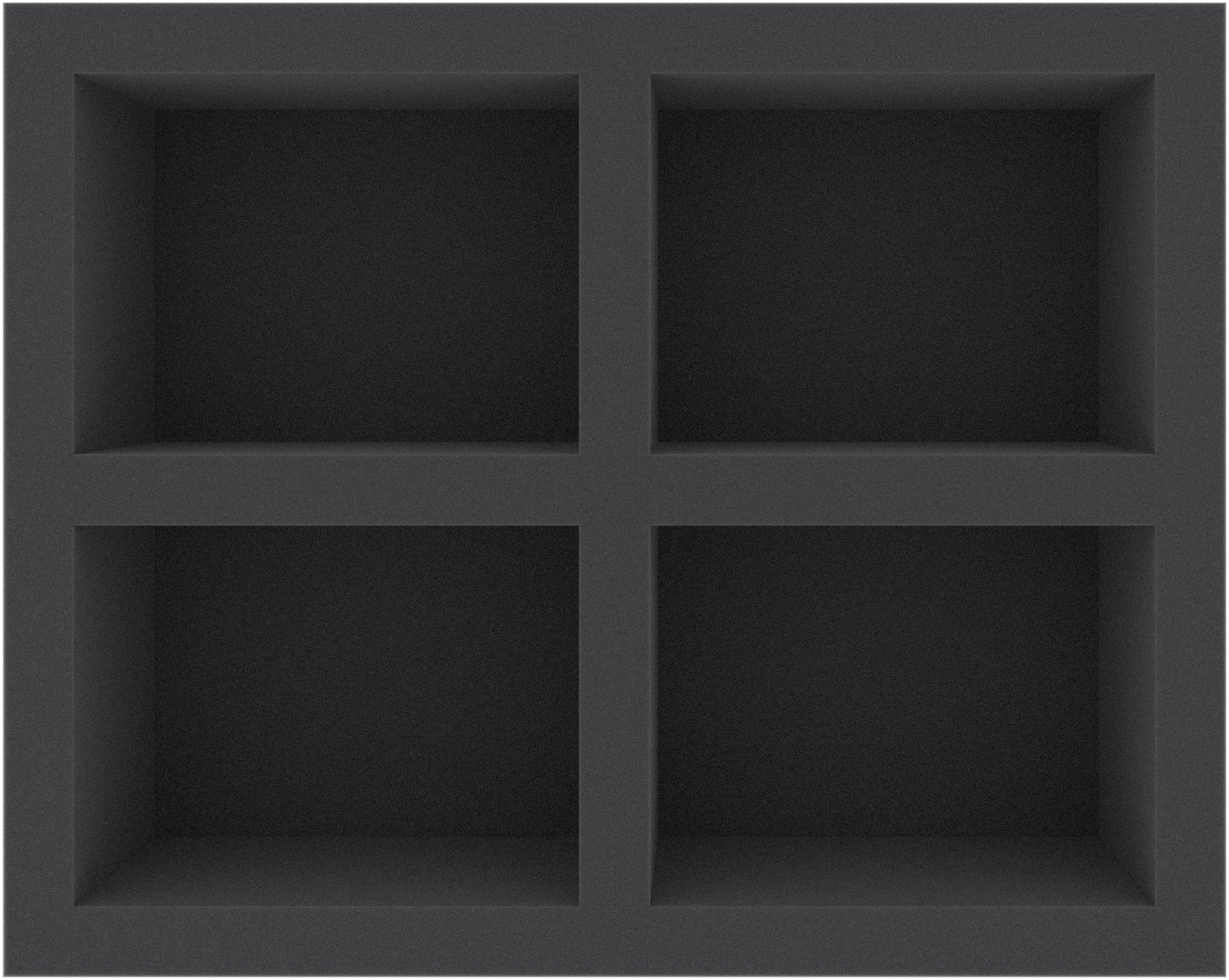 The Full-Size foam tray has the dimensions: 345 mm x 275 mm x 90 mm total height (80 mm usable height + 10 mm foam base).
