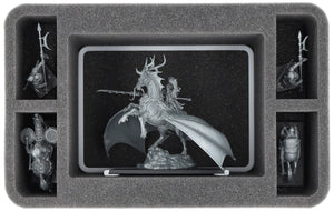 - Spazio aggiuntivo per segnalini, carte incantesimo, segnalini di comando, nastri di misurazione, dadi e altri accessori di gioco