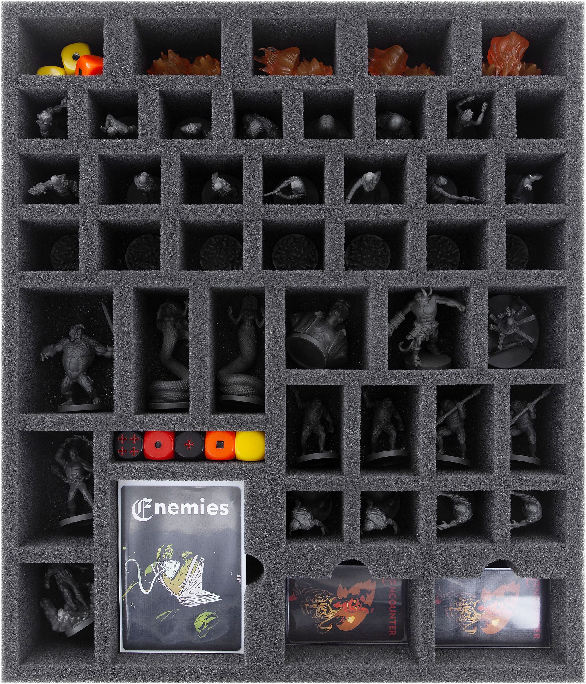 - 1 foam tray with 47 compartments for smaller Stretch Goal miniatures, dice and (sleeved) cards (BGMENU055BO)
