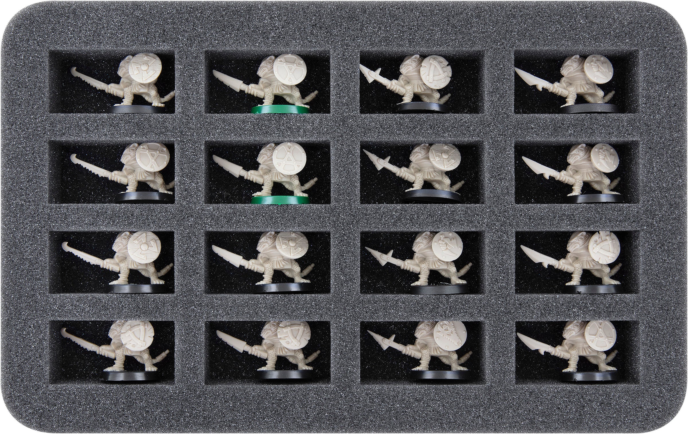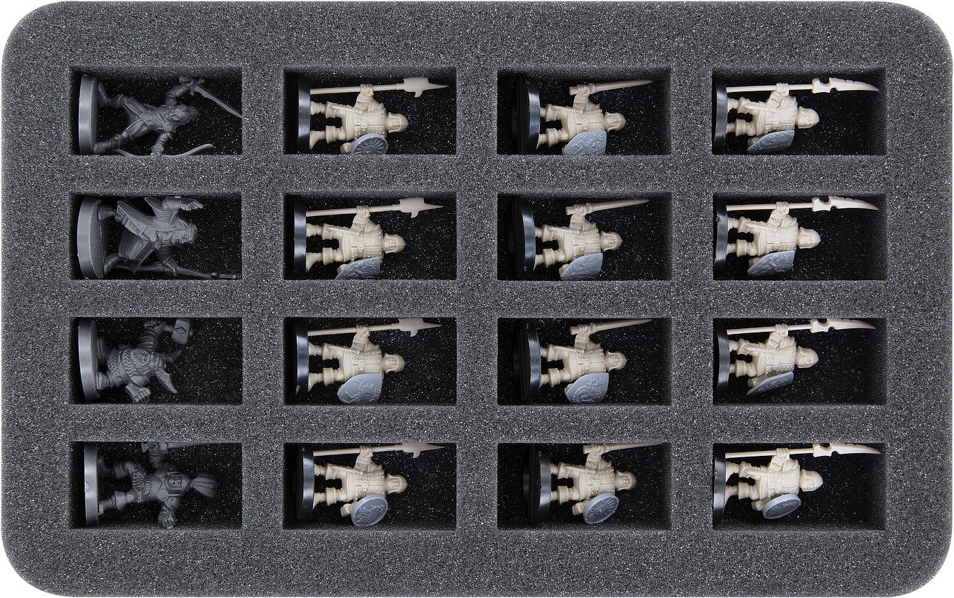 - 2 Half-Size foam trays, each with 16 compartments for Heroes, Skaven, and models with similar dimensions (HS035BO)