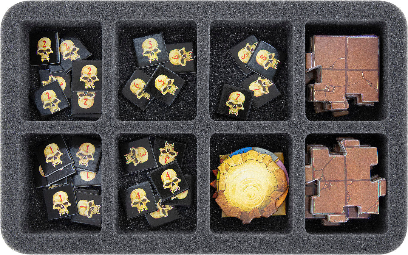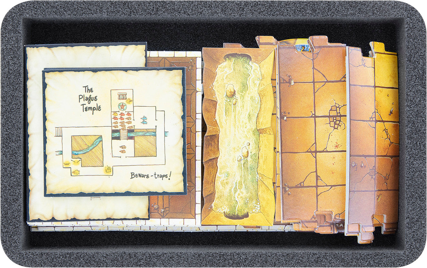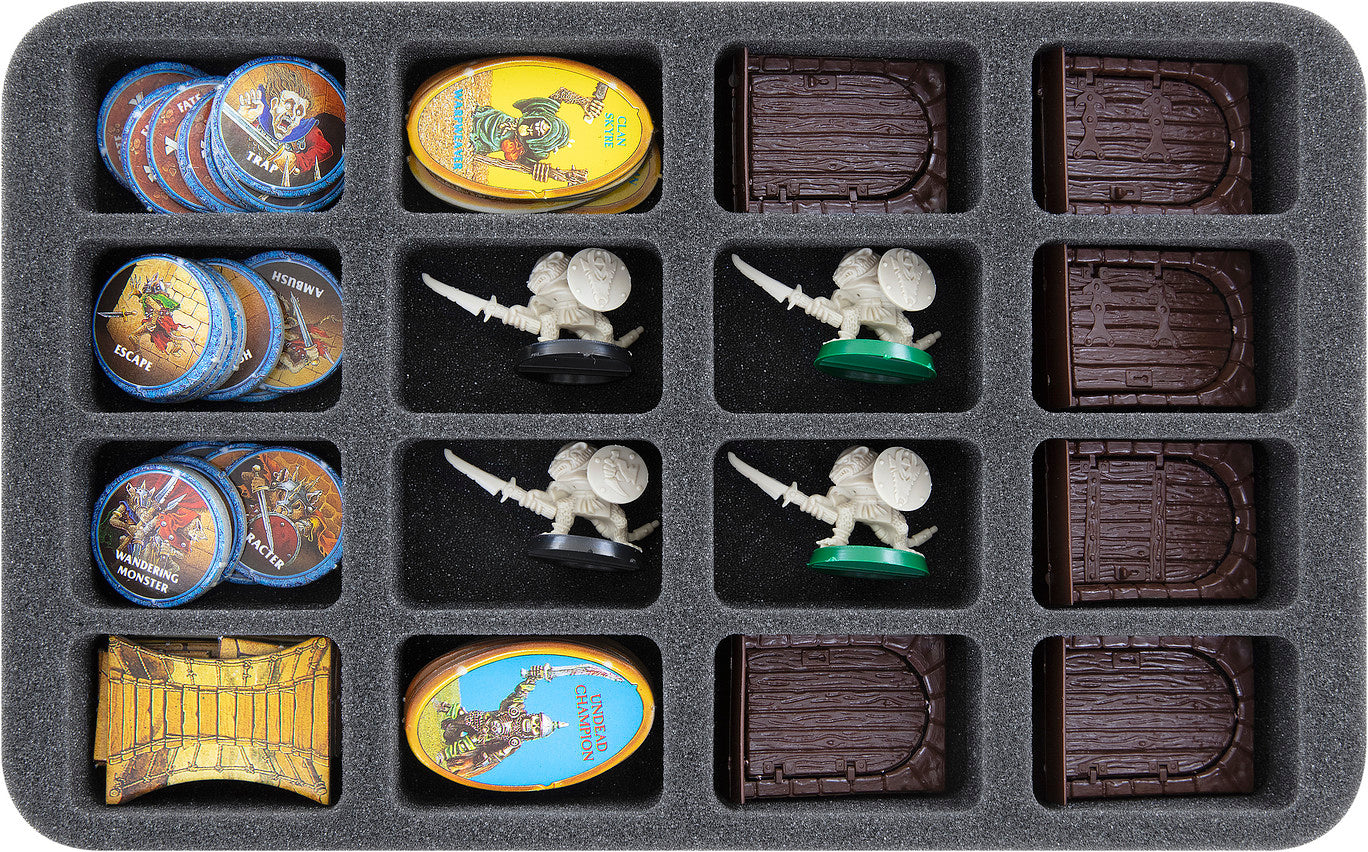 - 2 Half-Size foam trays, each with 16 compartments for Heroes, Skaven, doors, and additional miniatures from the expansions (HS035BF05BO)